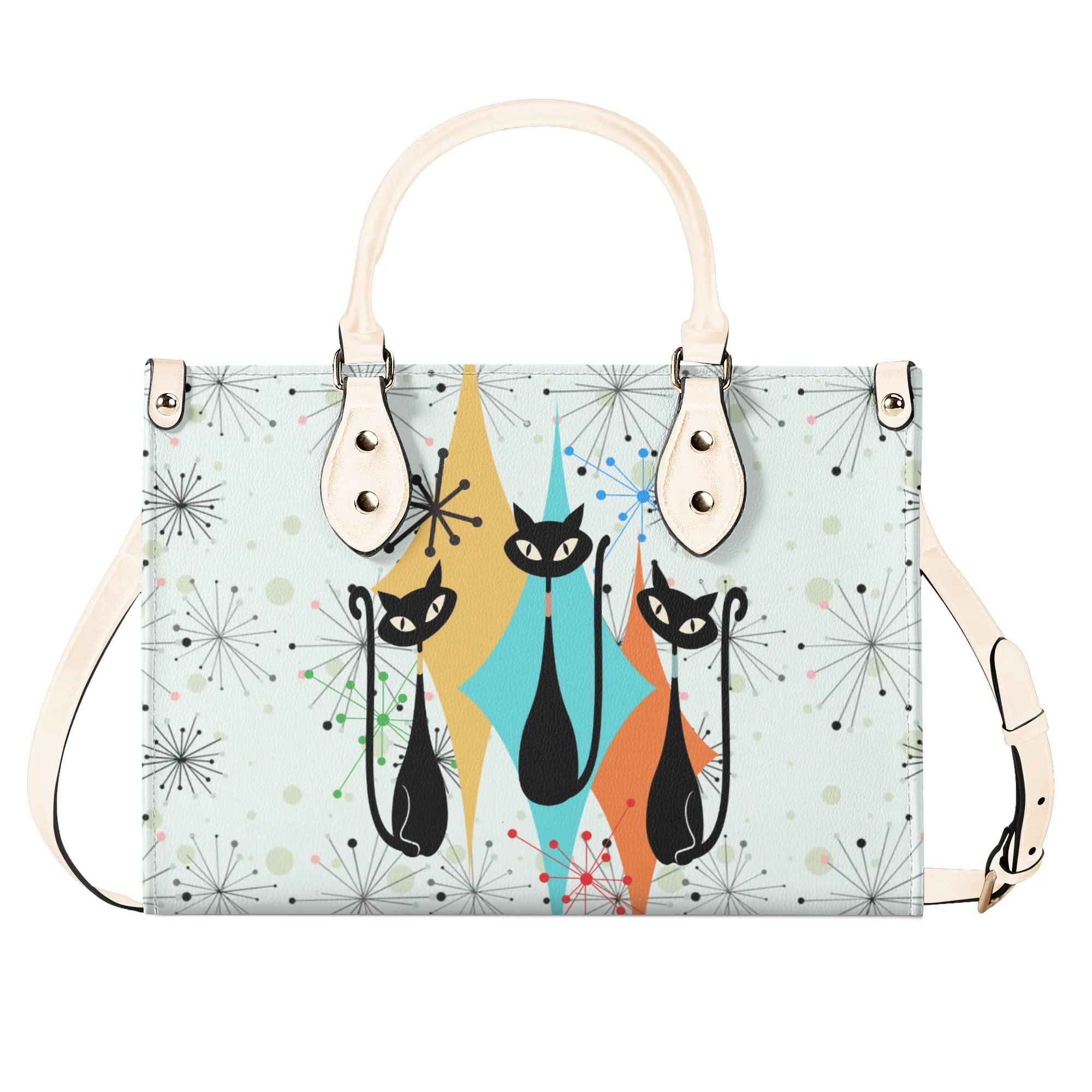 Bolso satchel Atomic Cat de mediados de siglo con diseño de estrellas, bolso retro MCM, bolso geométrico moderno de los años 50