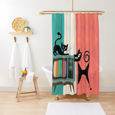 Cortina de ducha retro con diseño de gato atómico, cortina de baño MCM vibrante, decoración de baño nostálgica de los años 50