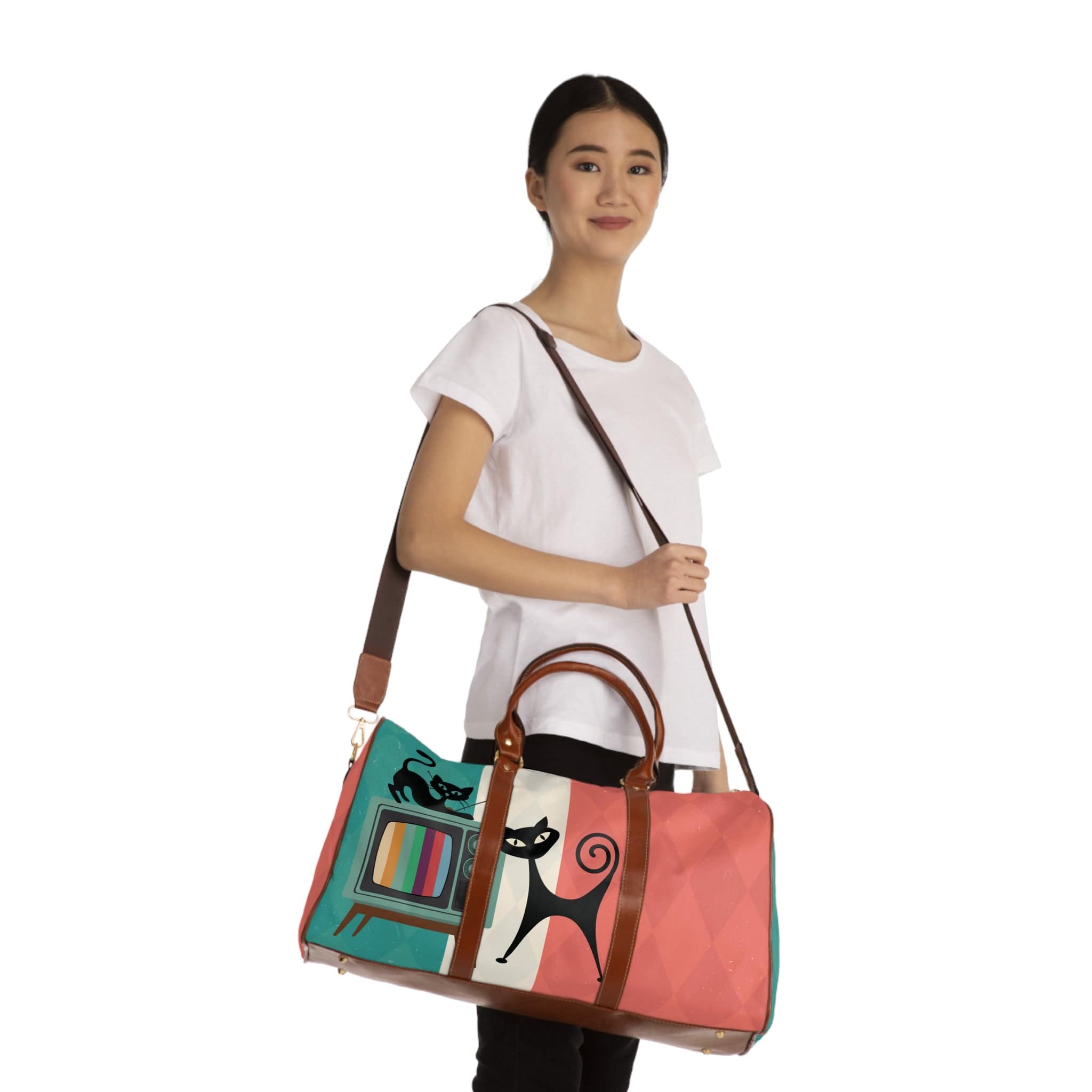 Bolsa de viaje Atomic Cat Retro TV, vibrante bolso de fin de semana MCM, bolso de viaje nostálgico de los años 50
