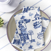 Dale un toque de elegancia clásica a tu mesa con nuestras servilletas Chinoiserie Azules. Cada servilleta de este juego de cuatro está adornada con el atemporal estampado de sauce, ofreciendo una experiencia gastronómica serena y sofisticada.