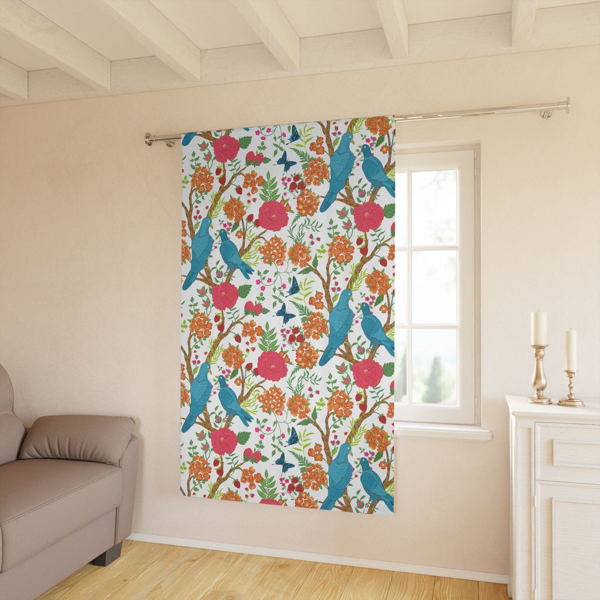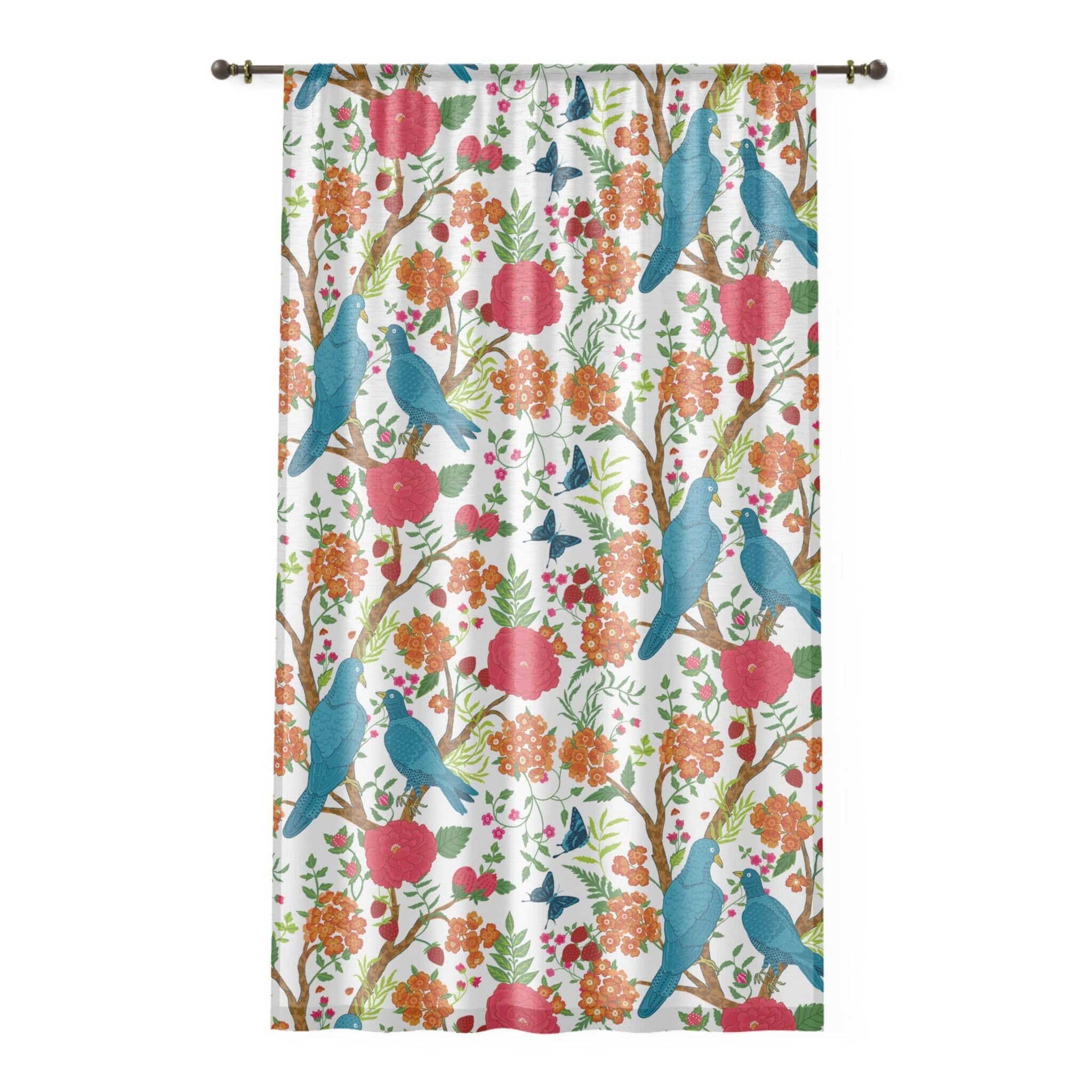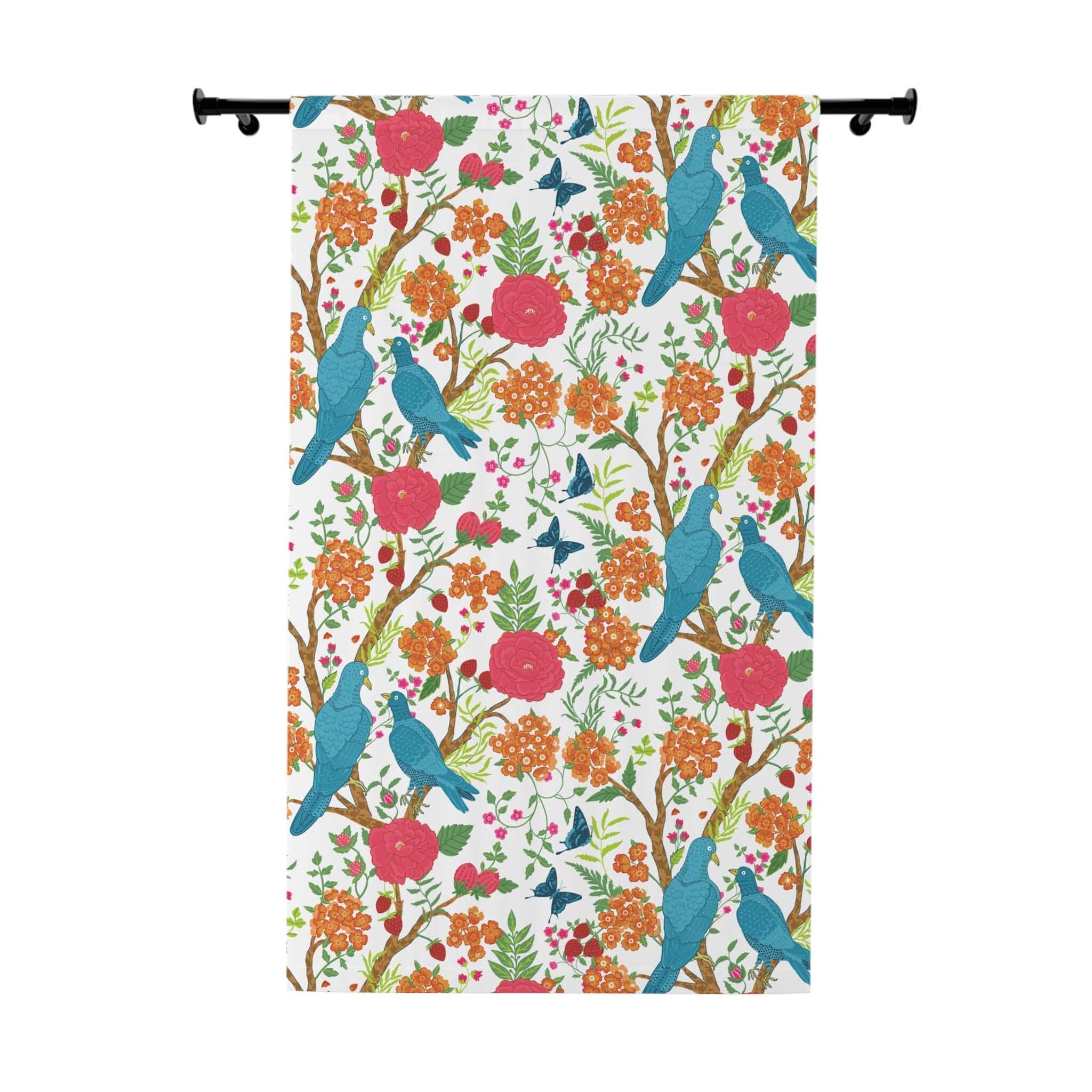 Dale un toque exótico oriental a tus ventanas con estos coloridos paneles de cortina con motivos florales chinoiserie. Con una vibrante escena de jardín botánico con aves exóticas en tonos rosa, verde, naranja y azul, estas modernas cortinas chinoiserie aportan un toque internacional a cualquier habitación. La manera perfecta de añadir un toque artístico a la decoración de tu hogar.