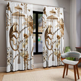 Cortinas de toile botánico estilo jungla chinoiserie, paneles florales estilo jungla chinoiserie en marrón y blanco, decoración rústica - 122681123