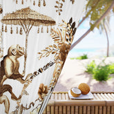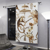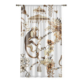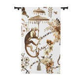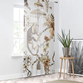 Paneles de cortina con estampado floral chinoiserie y toile con exóticos motivos botánicos selváticos en tonos marrón tierra y blanco. Una elegante cortina que integra un estilo de inspiración internacional en la decoración de cualquier habitación. La elegancia rústica se fusiona con el encanto oriental.