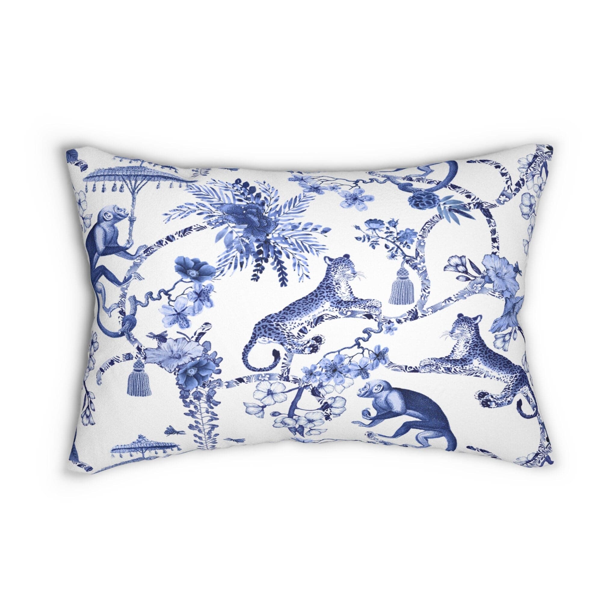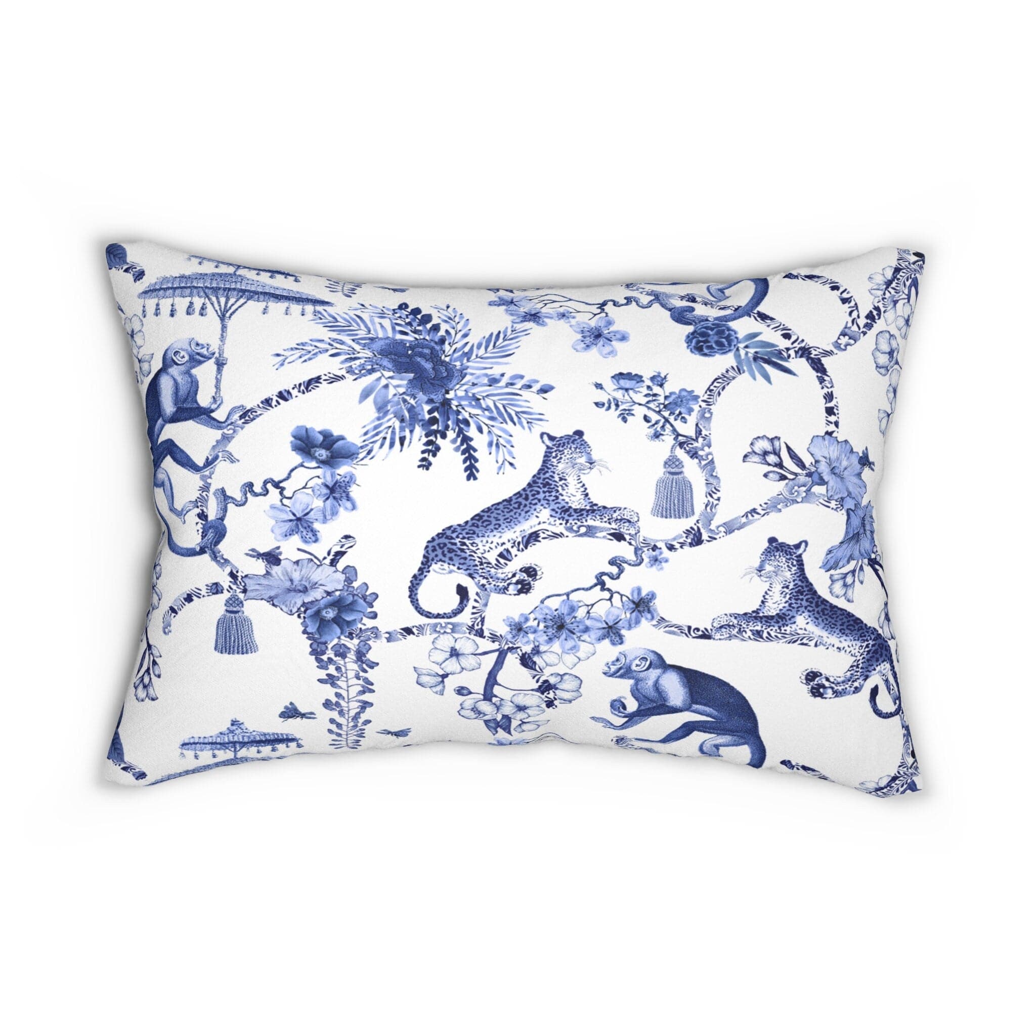Almohada lumbar chinoiserie, colección de ropa de cama Botanical Toile, almohada decorativa con estampado chinoiserie azul y blanco floral con inserto