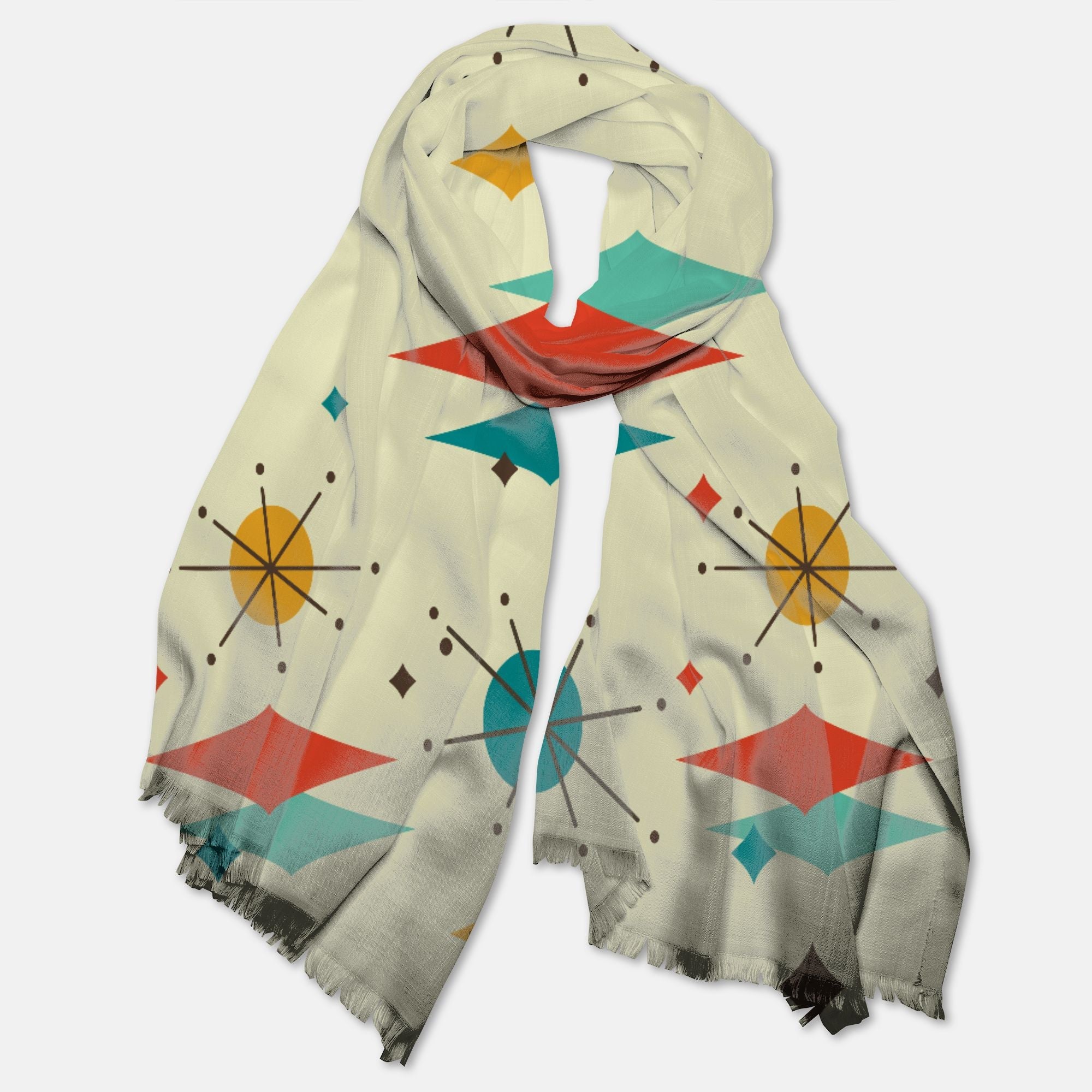 Bufanda de pashmina Franciscan Diamond Starburst, chal moderno de mediados de siglo