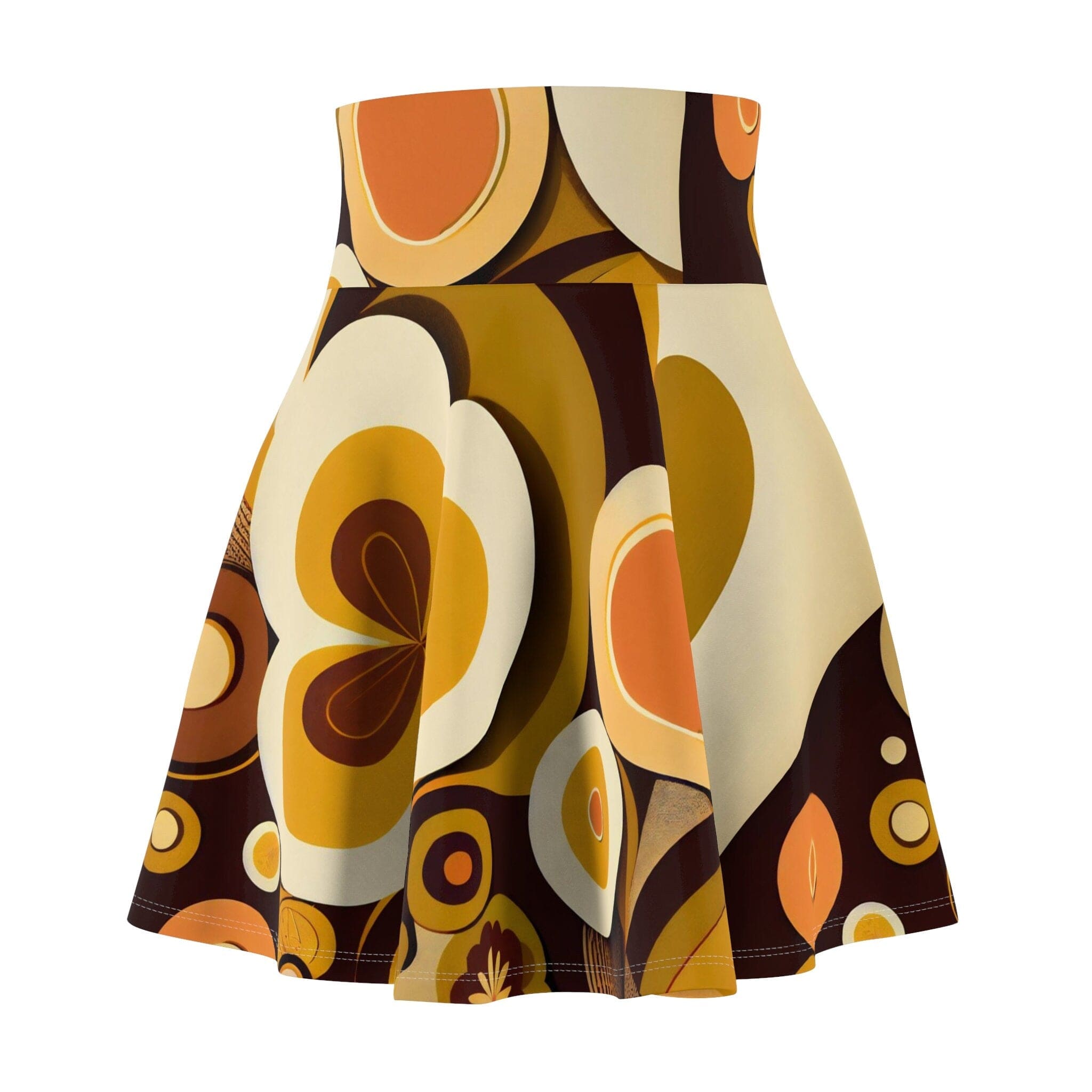 Falda skater estilo hippie retro de los años 60 con estampado floral de MCM, falda disco bohemia moderna de mediados de siglo - 129782223