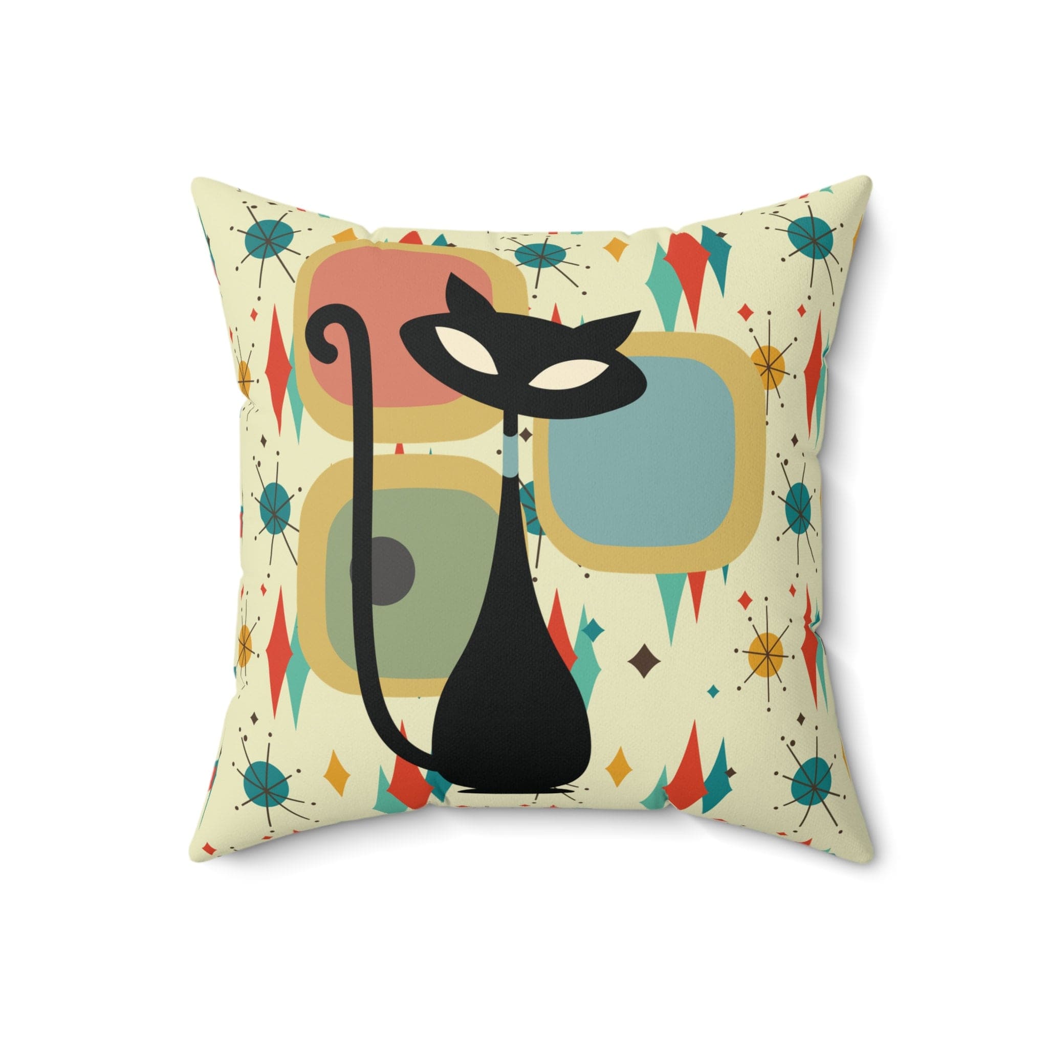 Cojín decorativo moderno de mediados de siglo con diseño de gato atómico y relleno, cojines decorativos retro con diseño de estrella de diamante franciscano