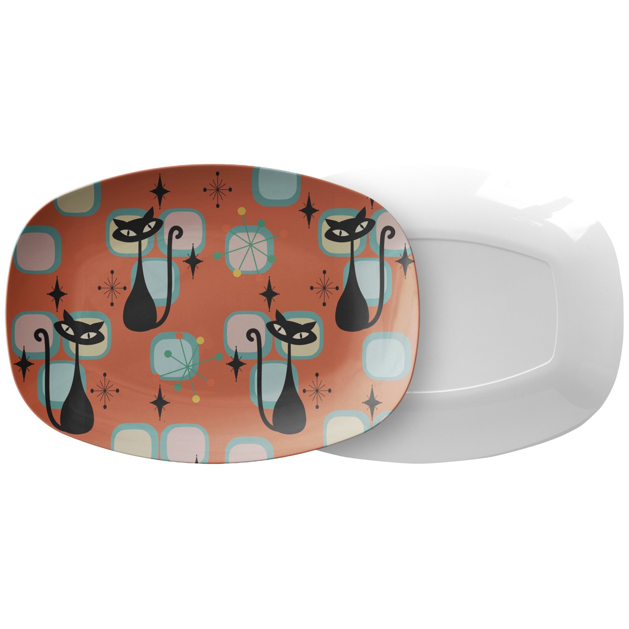 Plato para gatos atómico moderno de mediados de siglo, diseño retro geométrico de estrellas, decoración moderna de los años 50