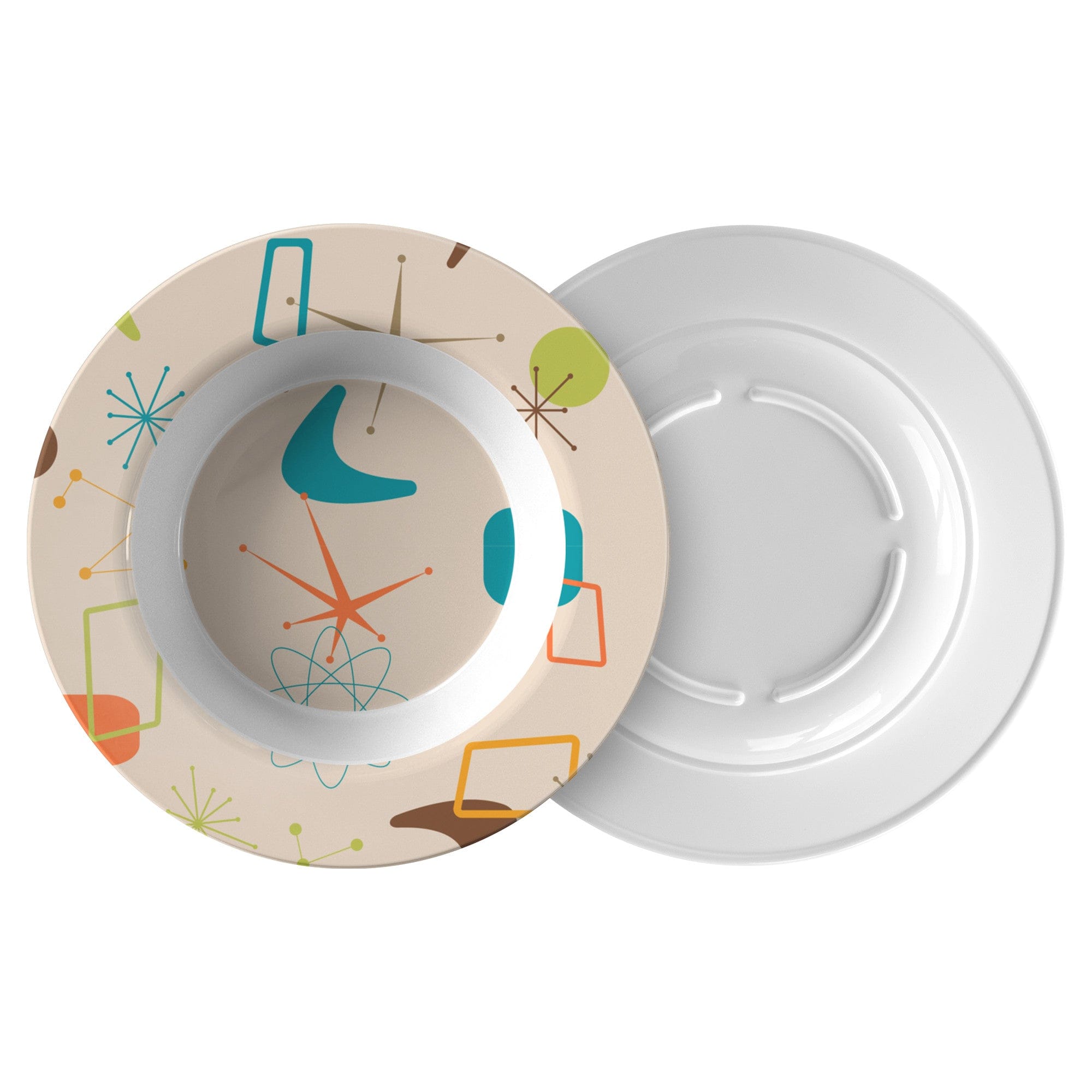 Retrocede en el tiempo con nuestro Tazón Decorativo de la Era Atómica, donde la modernidad de mediados de siglo se fusiona con la vajilla moderna. ¡Un plato con un toque retro, con estilo!