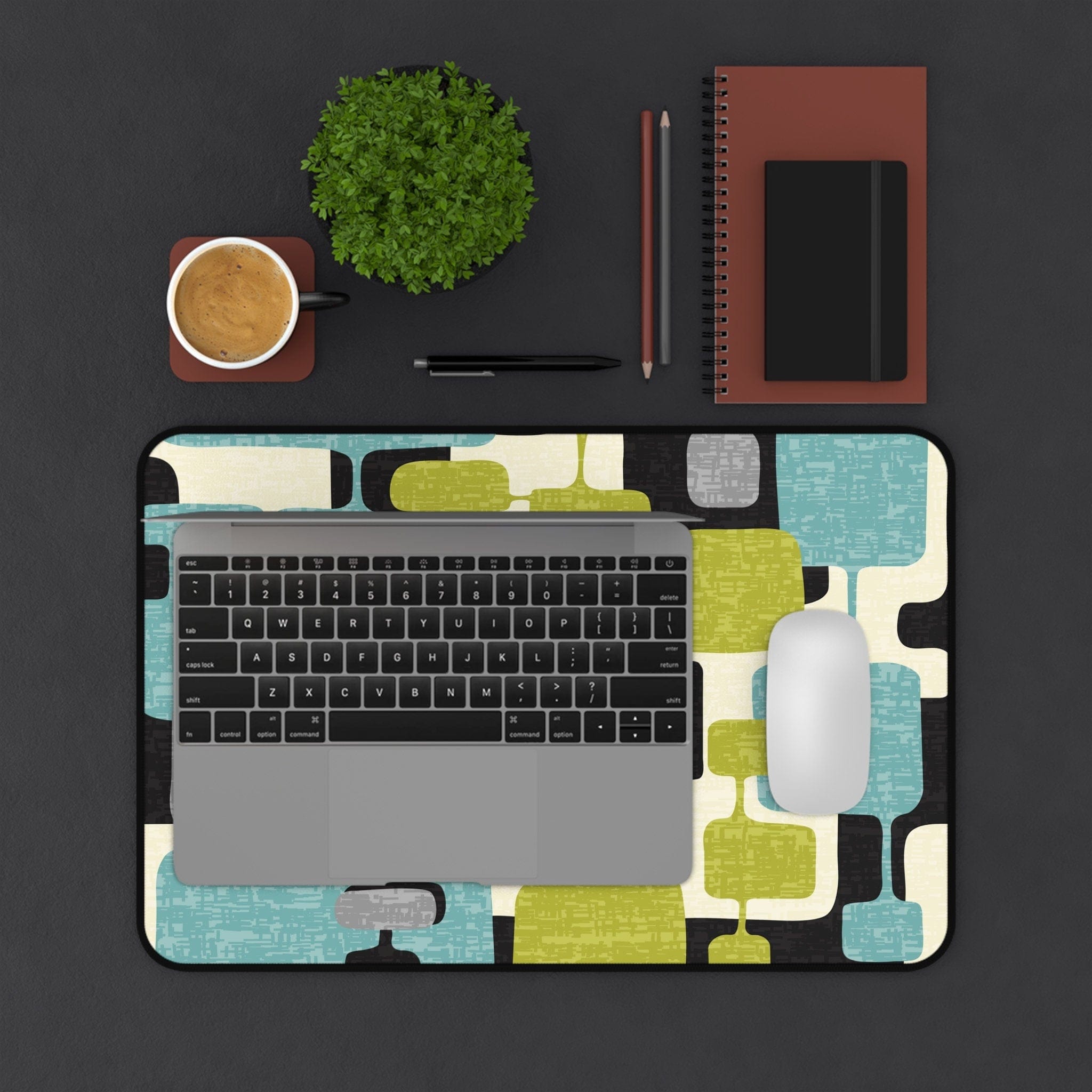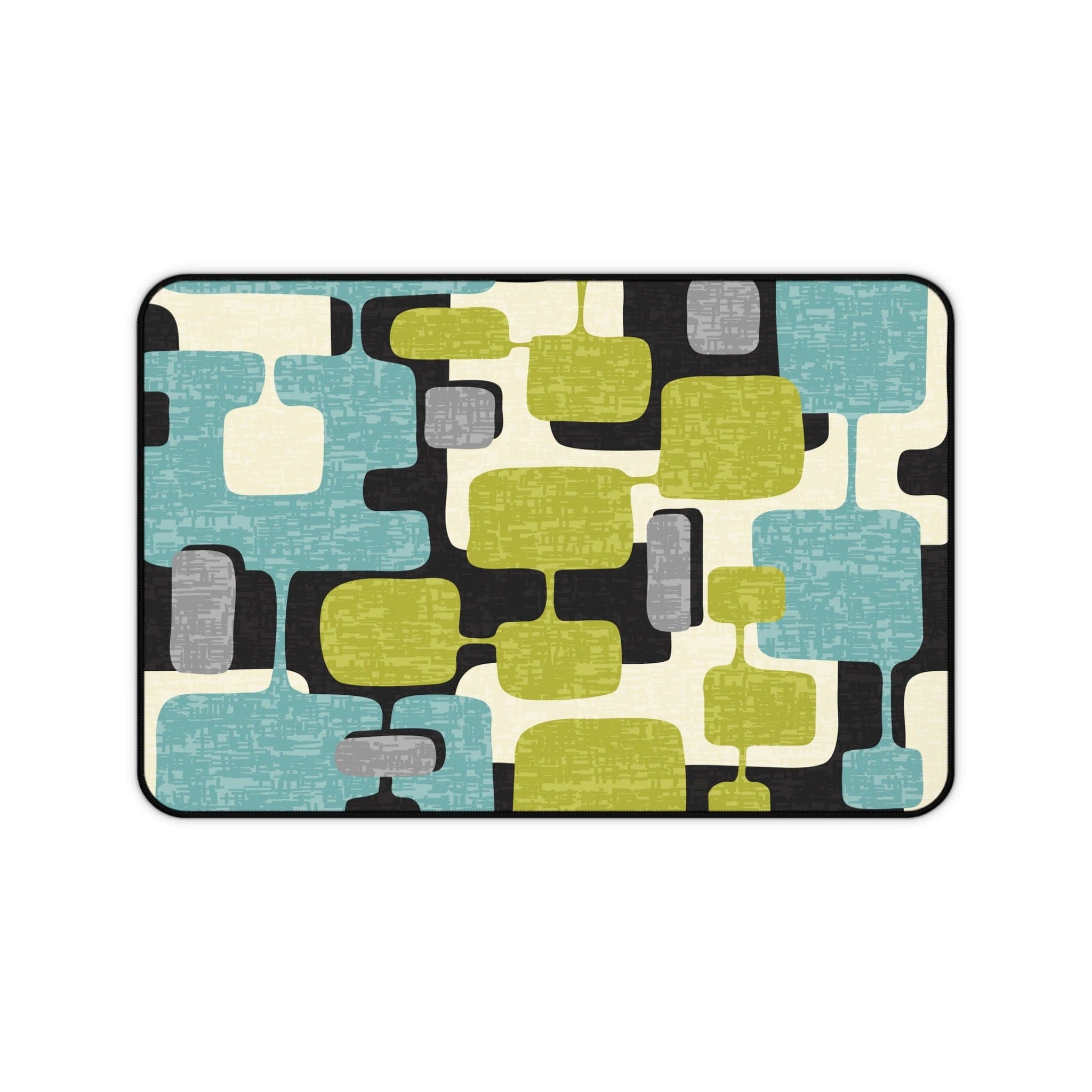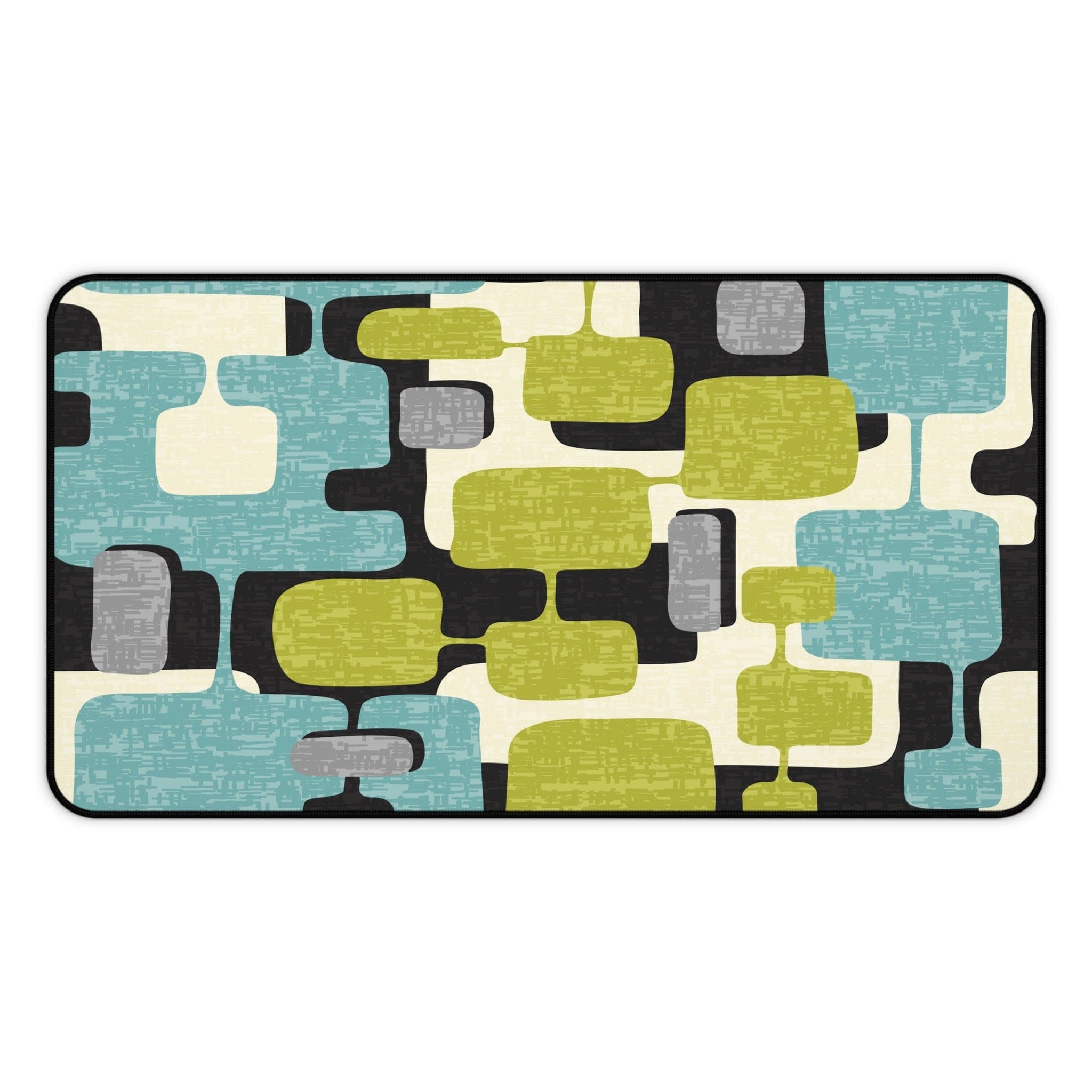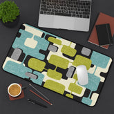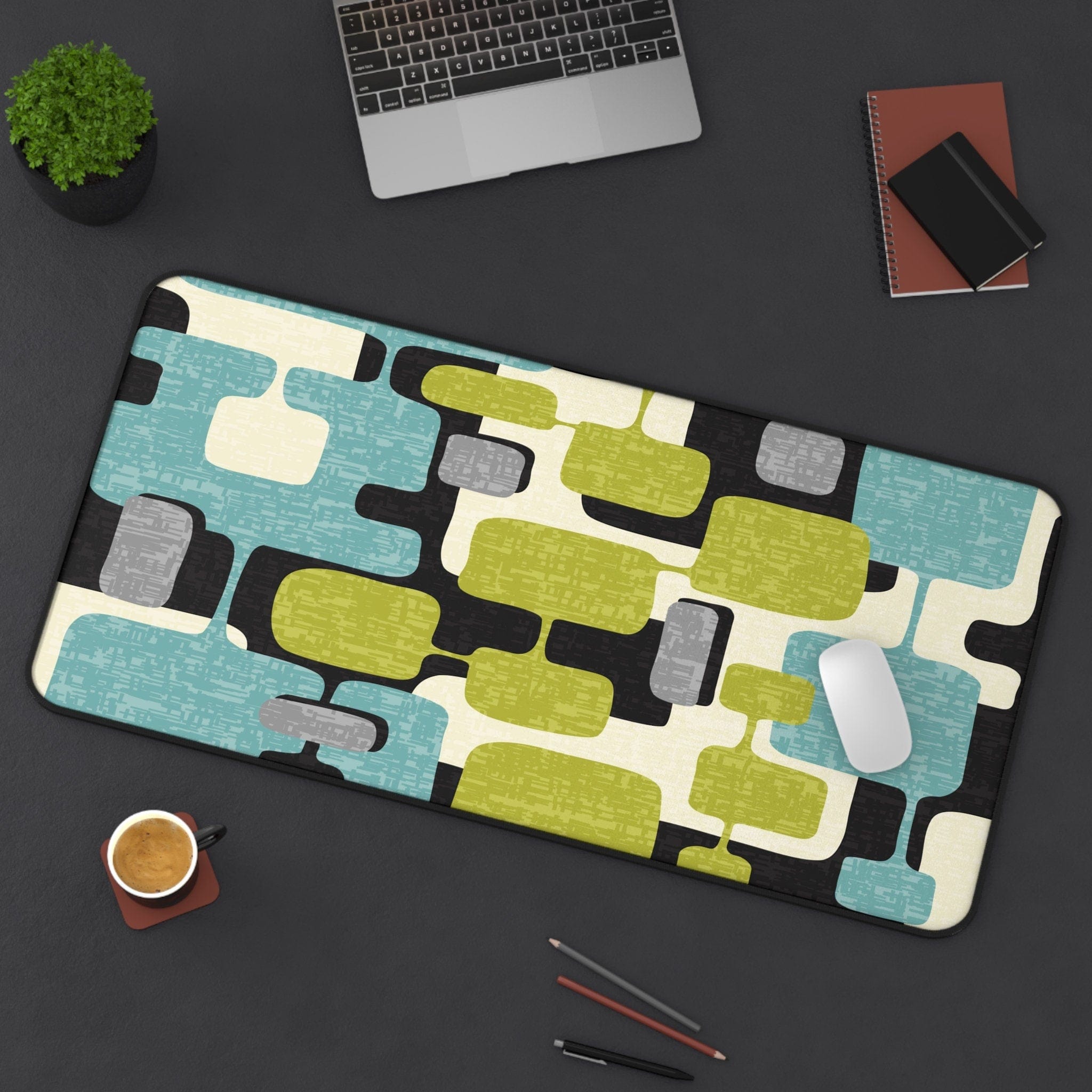 Tapete de escritorio geométrico abstracto moderno de mediados de siglo, verde azulado retro, verde lima, gris y negro, accesorios de oficina MCM