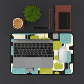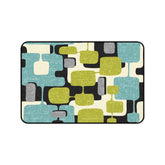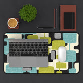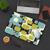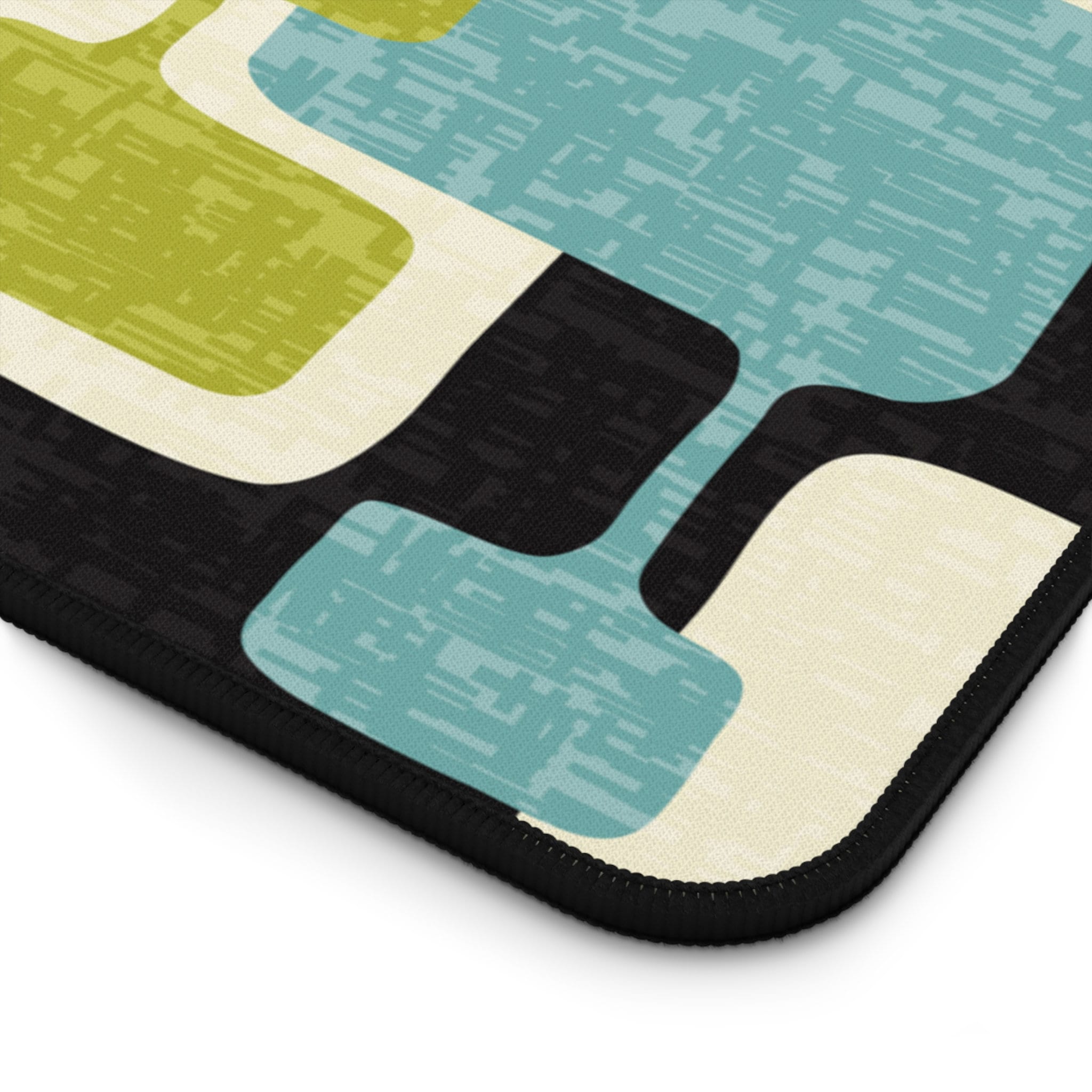Protector de escritorio con un elegante diseño geométrico abstracto en verde azulado, verde lima, gris y negro. Dale un toque moderno a tu oficina en casa con este elegante accesorio de escritorio de mediados de siglo.