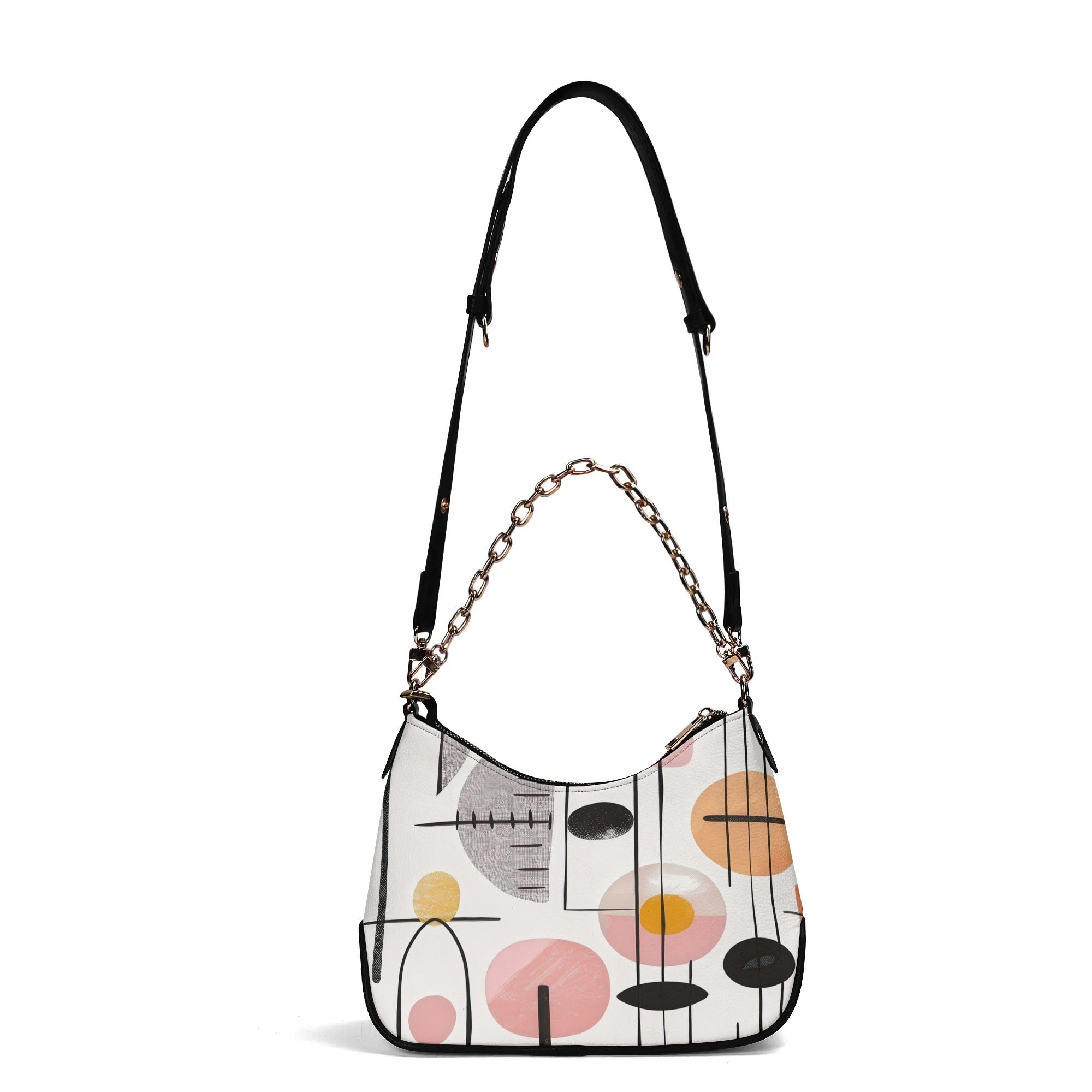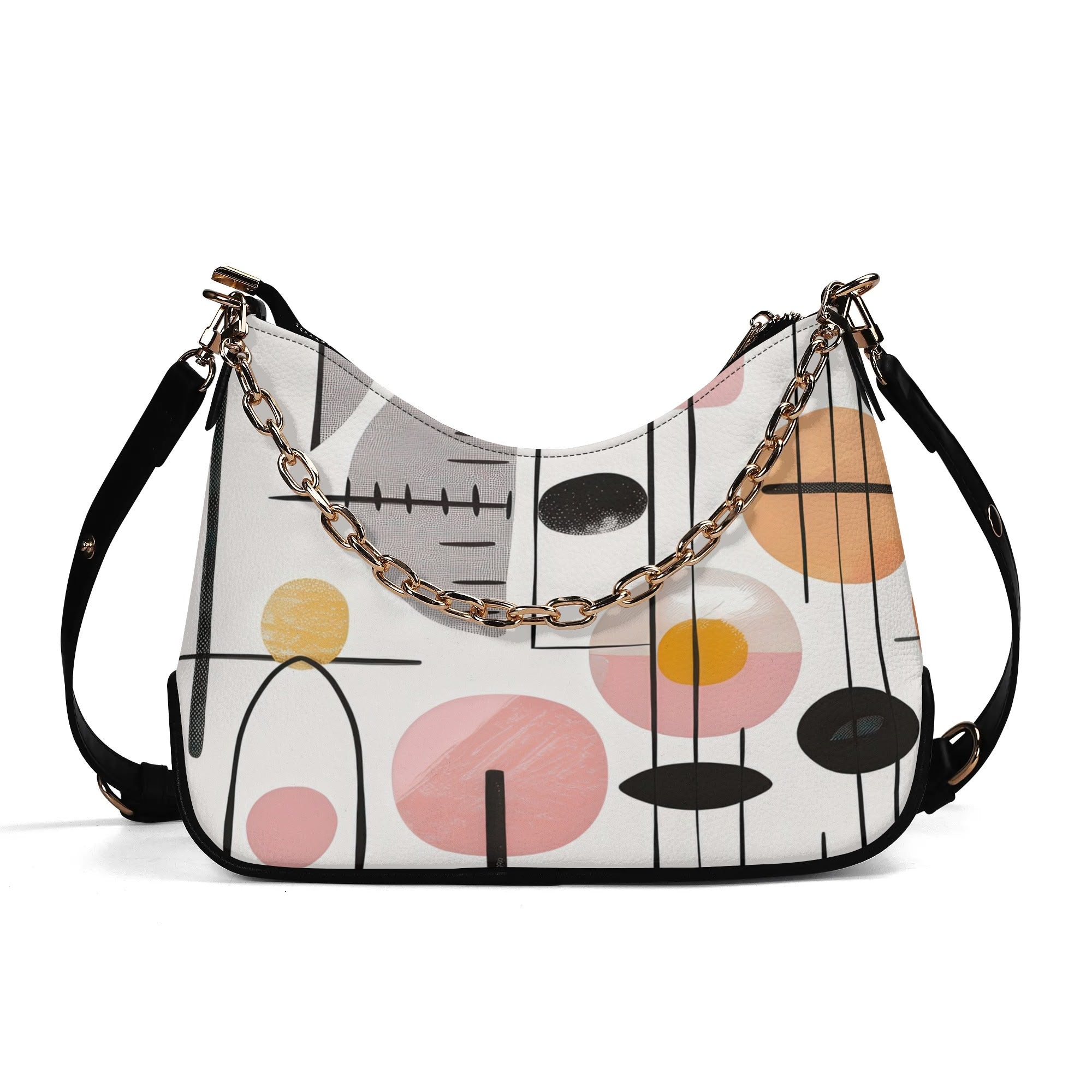 Realza tu estilo con el estampado integral de este bolso bandolera Lady de PU, adornado con elegantes cadenas. Fabricado en piel sintética de alta calidad, este bolso combina estilo y funcionalidad. Su correa de hombro ajustable y extraíble, junto con una correa de hombro con cremallera dorada, ofrece versatilidad, mientras que el cierre de cremallera seguro y la base rectangular garantizan la seguridad de tus objetos esenciales.