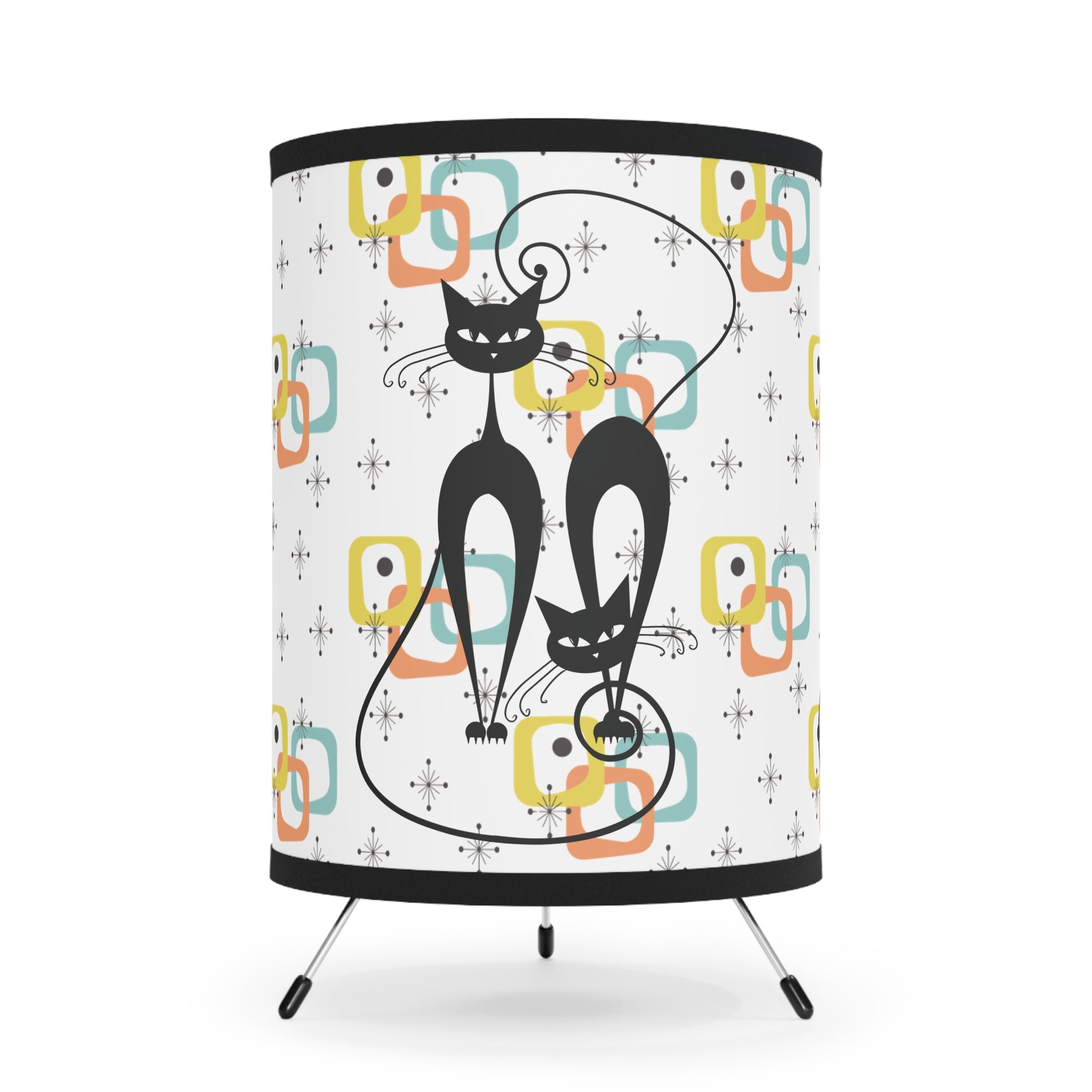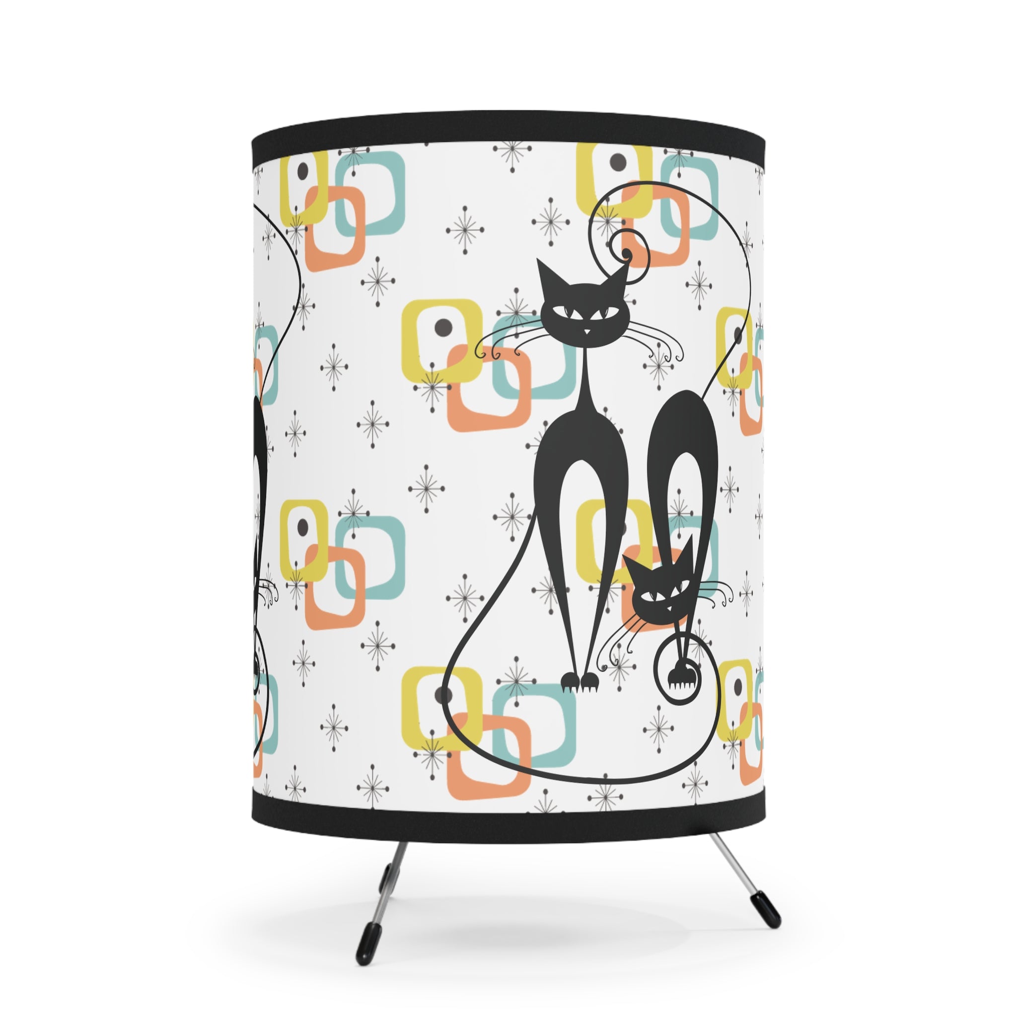 Ilumina tu espacio con un toque retro con nuestra lámpara trípode Mid Mod Atomic Cat. Su diseño geométrico de estrella de los años 50 le da un toque de estilo a cualquier habitación. Perfecta para los amantes de la decoración MCM de los años 50. (PD: ¡También es el regalo perfecto para los amantes de los gatos!)