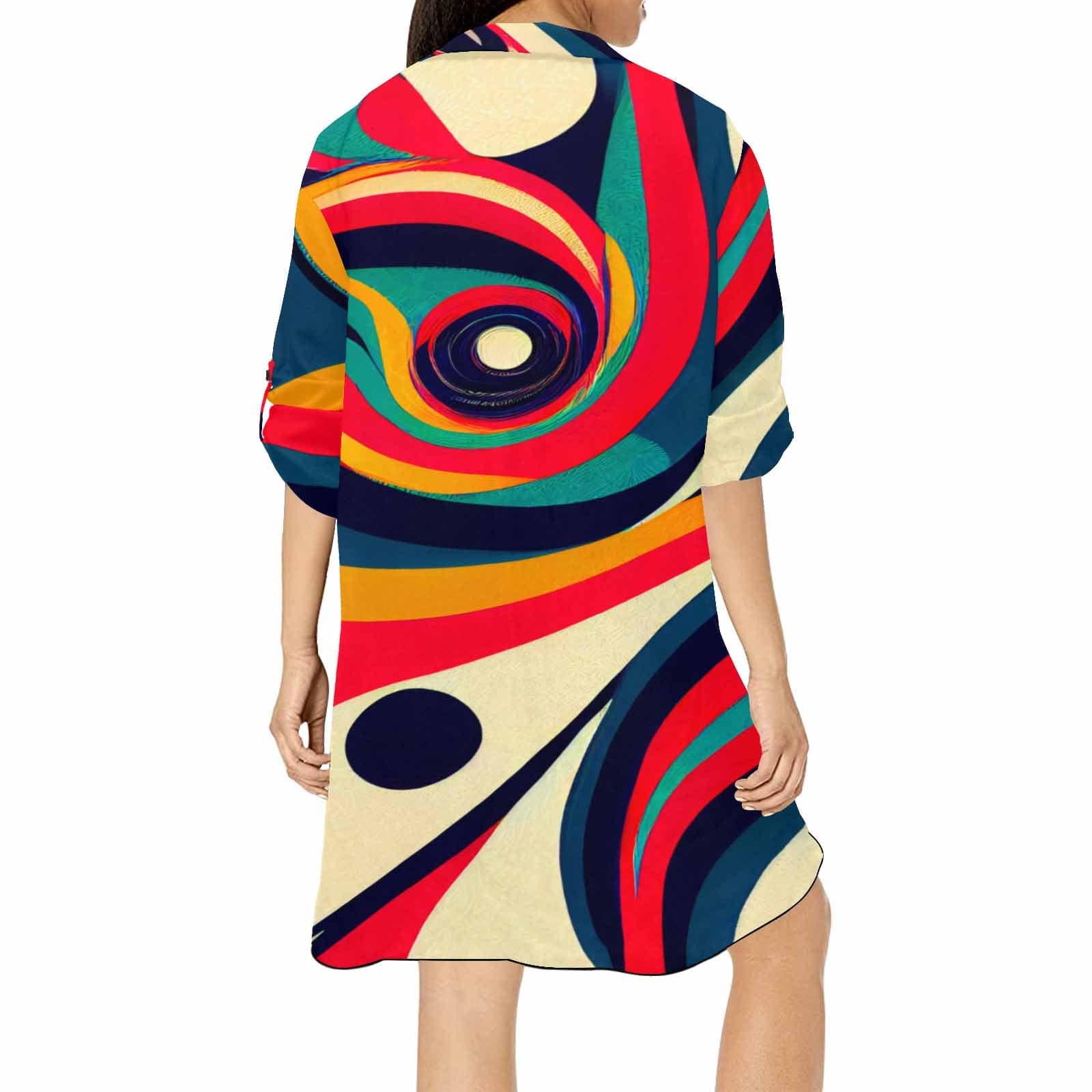 ¡Sé la estrella de la playa con este vestido camisero psicodélico retro! Nada dice "verano" como un estampado divertido y enérgico con un estilo desenfadado que te hará sentir como si vivieras en tecnicolor, ¡lista para cualquier actividad playera! La manera perfecta de mantenerte fresca y cubierta mientras disfrutas del sol. ¡Es hora de causar sensación con todas las de la ley!