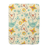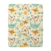 Manta polar sherpa estilo boomerang retro de la era atómica con diseño de estrellas de mediados de siglo