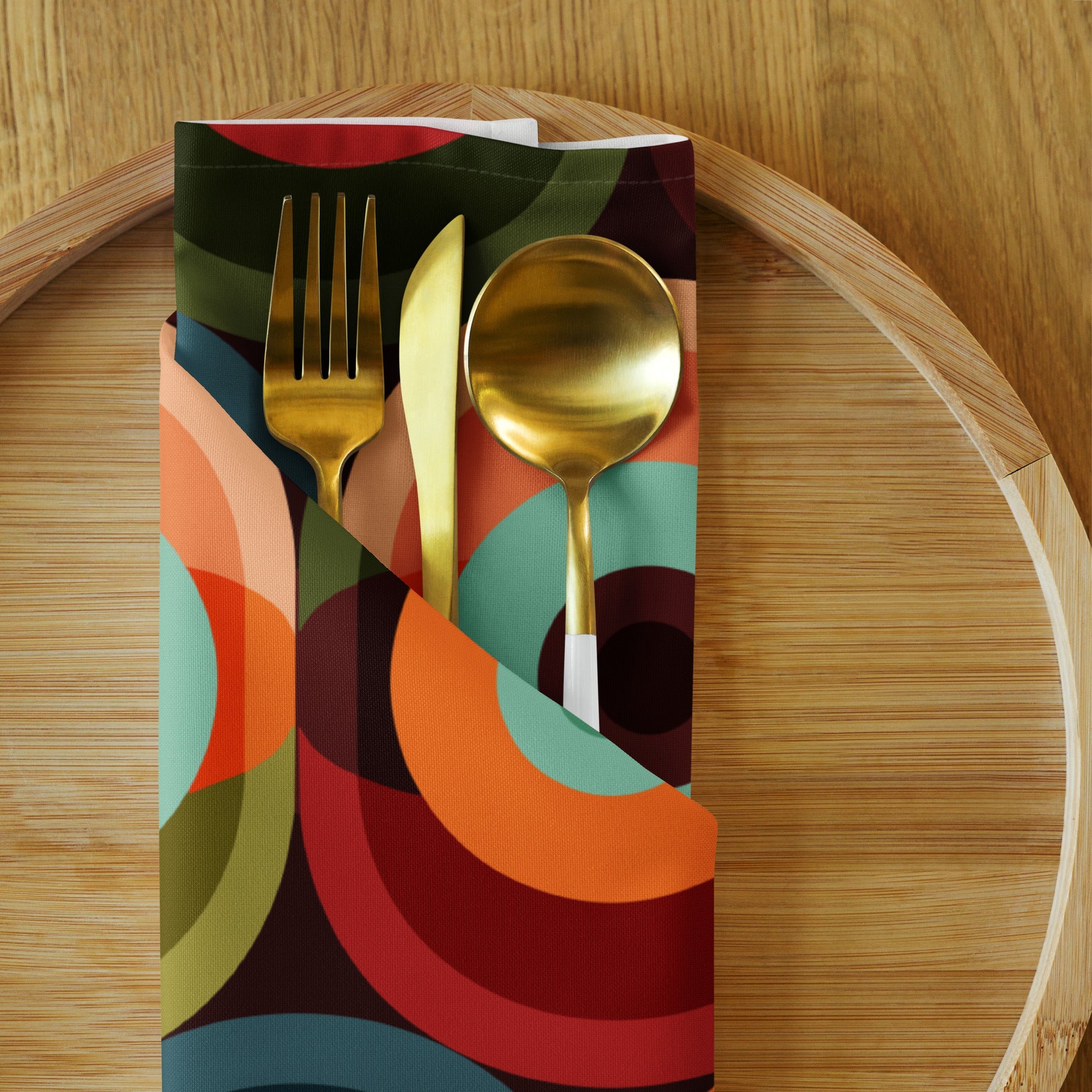Juego de 4 servilletas de tela con orbes geométricos circulares y modernos