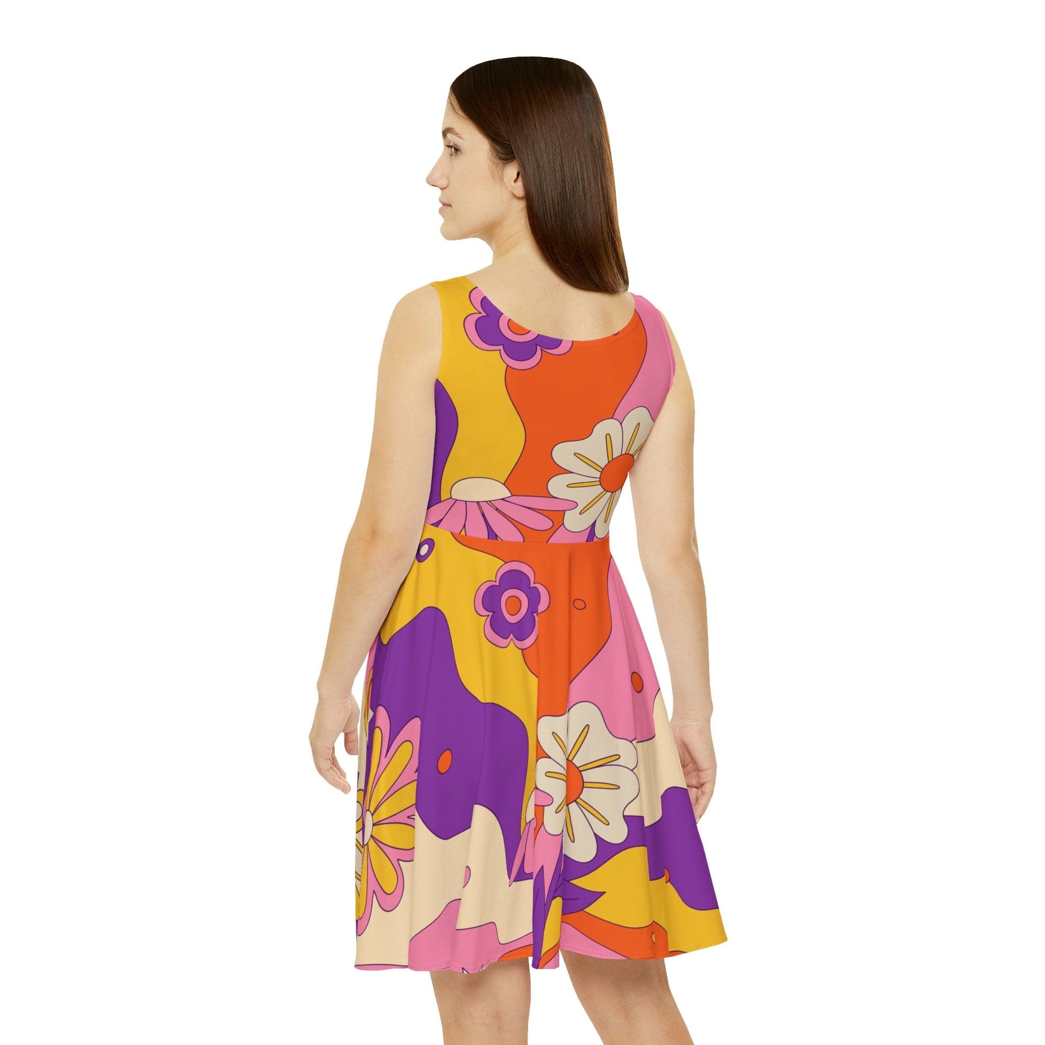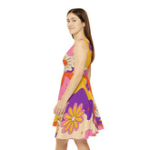 Dale un toque de color a tu armario con este precioso vestido skater retro de mediados de siglo con un toque floral. Este vibrante y elegante vestido es perfecto para cualquier ocasión, desde una barbacoa de verano hasta una salida nocturna. Con tonos beige, naranja quemado, amarillo mostaza, morado y rosa, sin duda causará sensación allá donde vayas. Elaborado con materiales de calidad como fibras de poliéster y elastano, que ofrecen una elasticidad y suavidad increíbles, este vestido está hecho para durar. Con una falda asimétrica y un favorecedor escote alto, te encantará esta prenda única. ¡Luce tu estilo único con este vestido único!