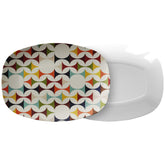 Bandeja geométrica retro moderna de mediados de siglo en crema, verde azulado, mostaza y óxido