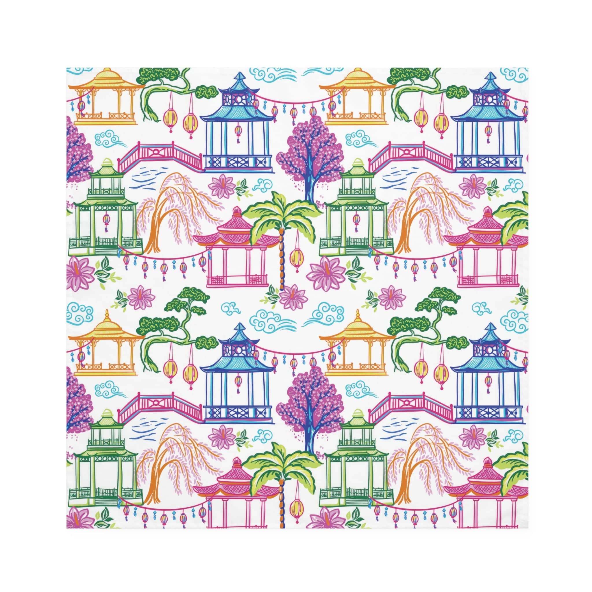 Juego de 4 servilletas estilo pagoda con diseño chino tropical en azul, rosa, verde y amarillo de Kate McEnroe - KM13859925