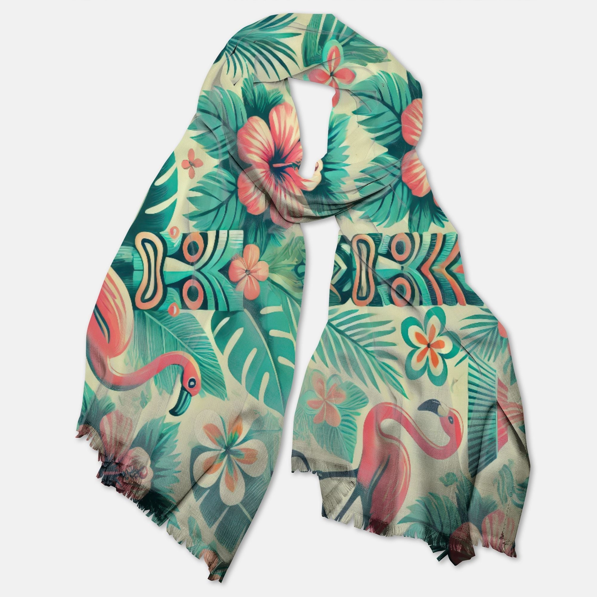 Déjate envolver por el aire alegre y excéntrico de nuestra Pashmina Tropical Flamingo Tiki. Con su vibrante estampado y su lujosa tela, te sentirás como en unas vacaciones en la playa, incluso en los días más fríos. Perfecta para añadir un toque único y original a cualquier look.