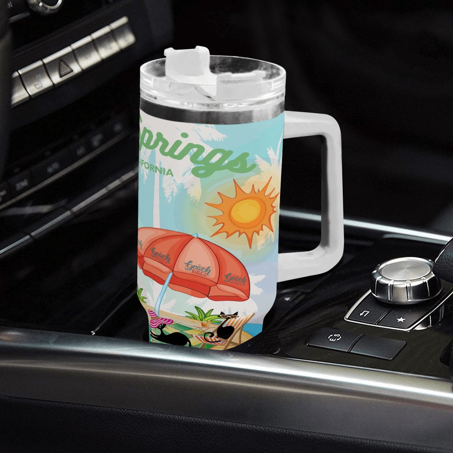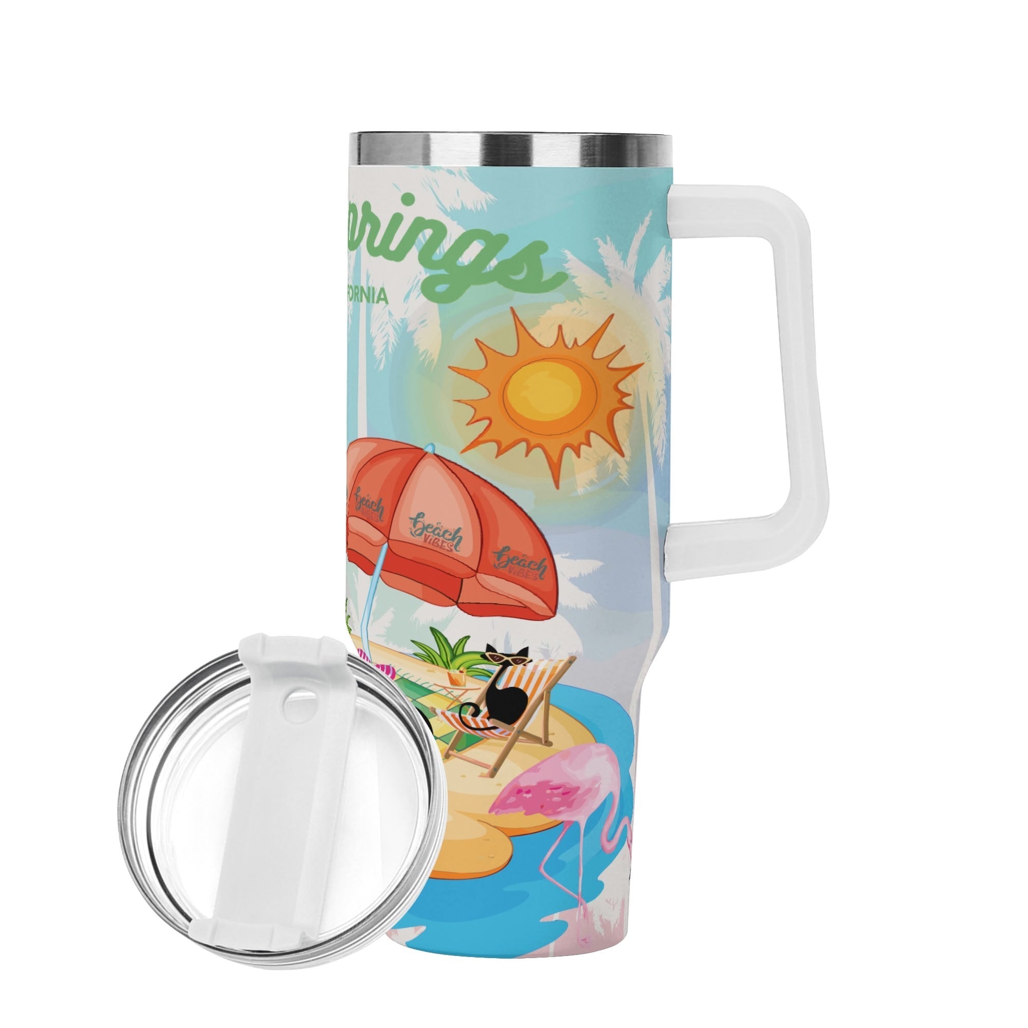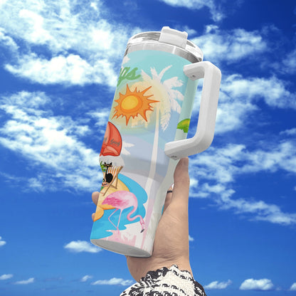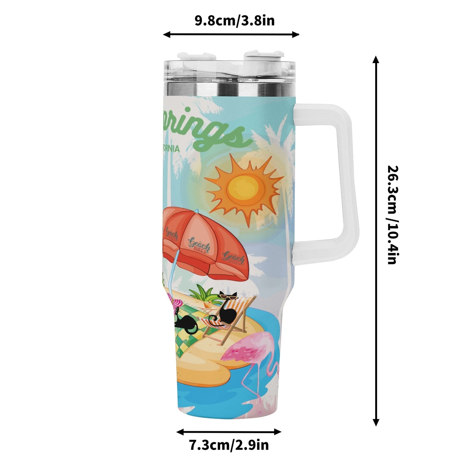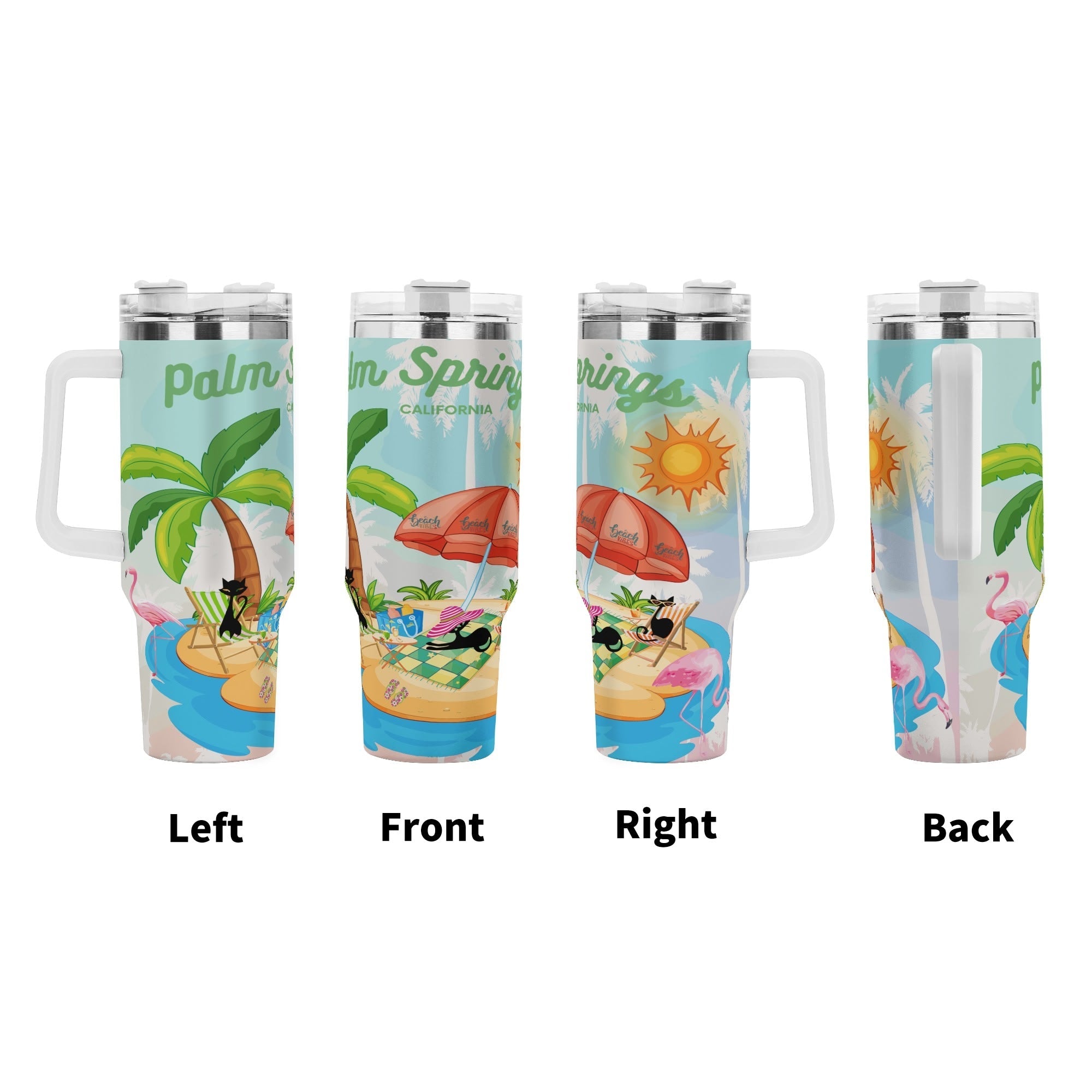 Sip in retro style with this Atomic Cat Palm Springs tumbler. Flamingos, sun, and mod vibes, straight outta 1950s paradise.
