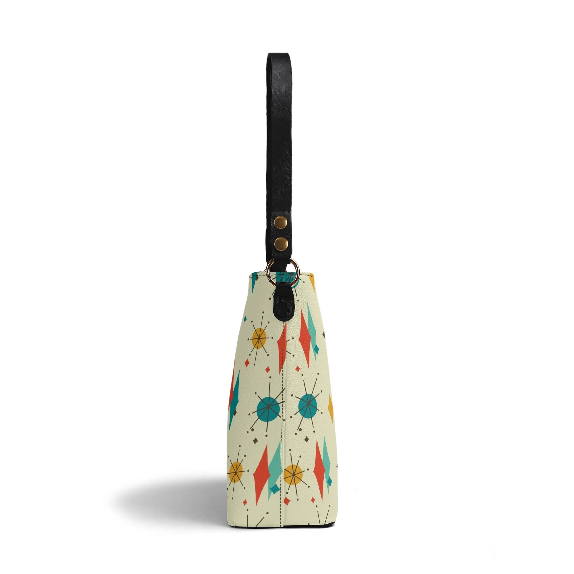 Atomic Cat Bucket Bag, Mid Century Modern Franciscan Diamond Starburst Handbag, Retro Shoulder Bag