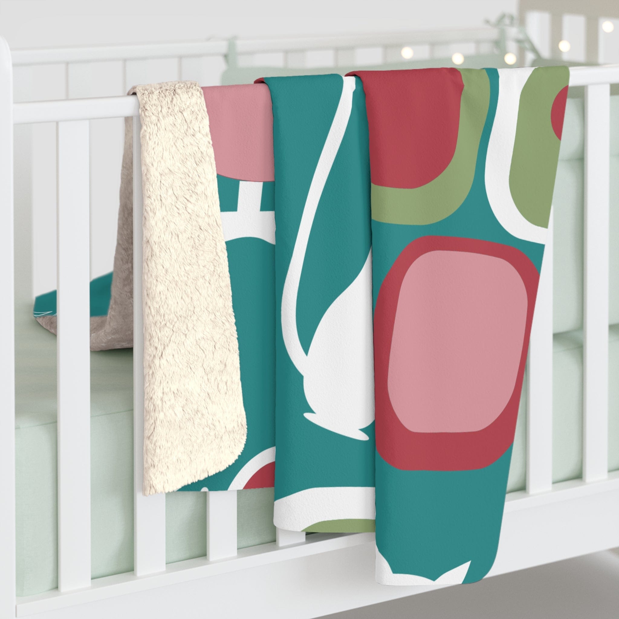 Atomic Cat Holly Jolly Holiday Sherpa Blanket, Mid Century Modern Christmas Throw