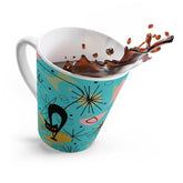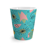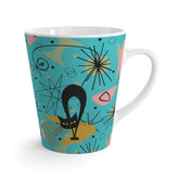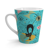 Atomic Cat Latte Mug, Mid Century Modern Retro Pink, Turquoise, Lime Starburst 12oz Coffee Cup, 50s 60s Retro Drinkware, Cat Lover's Gift