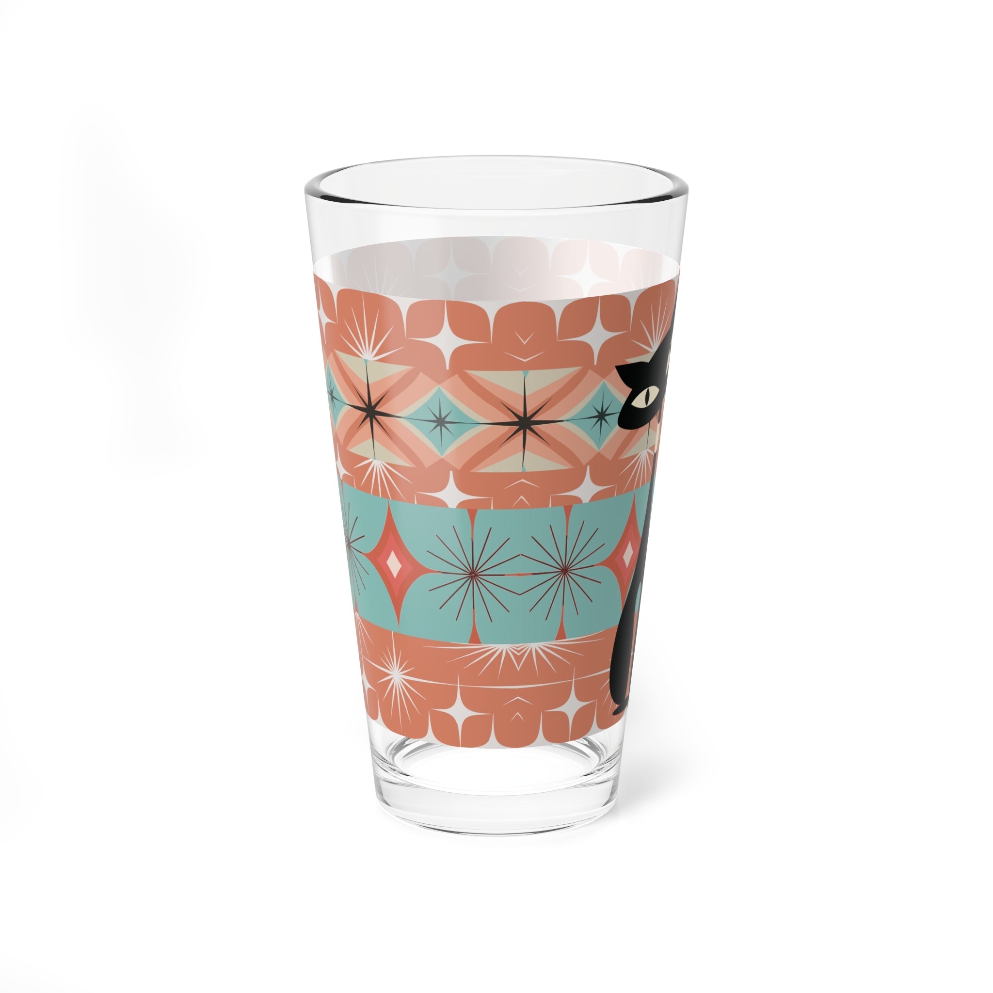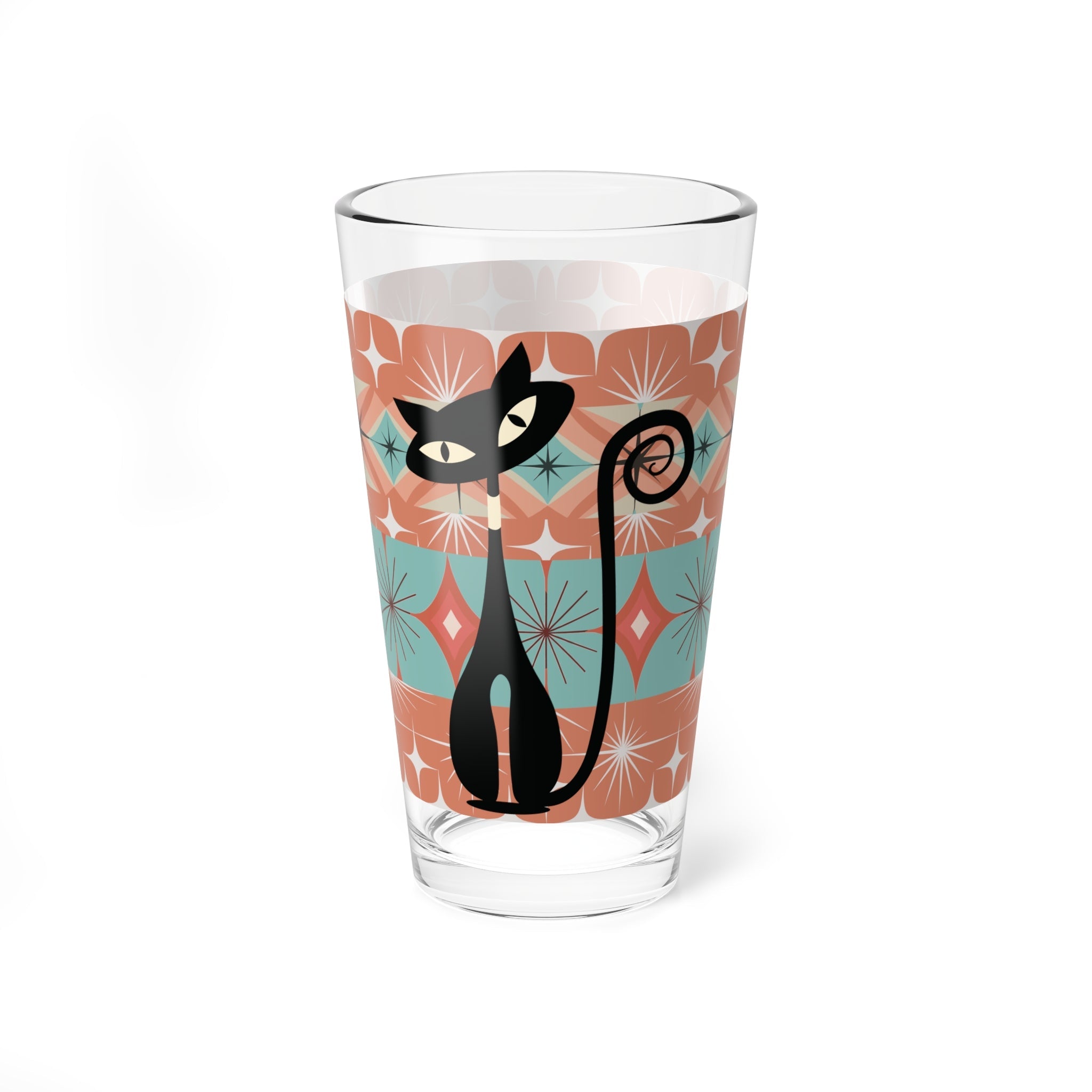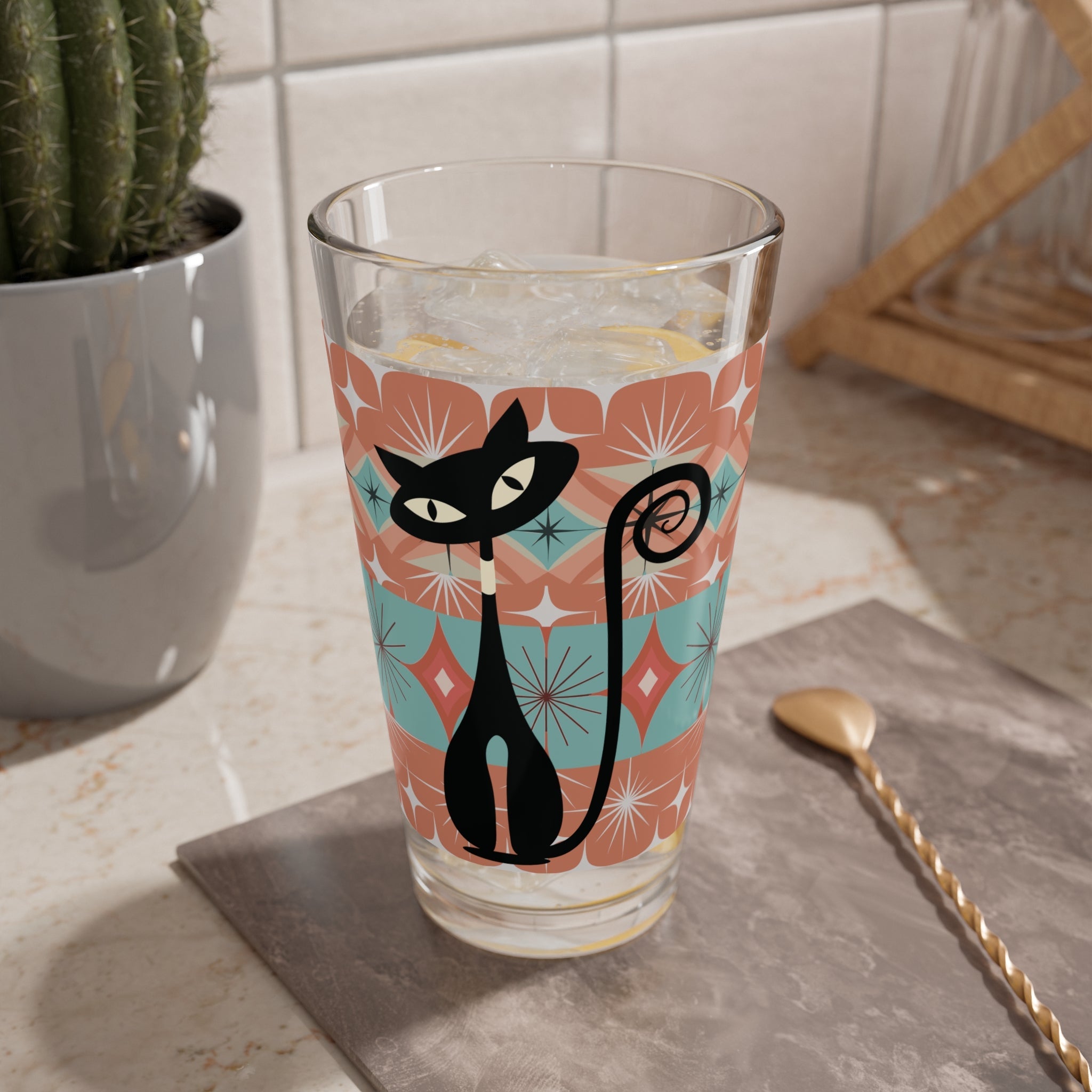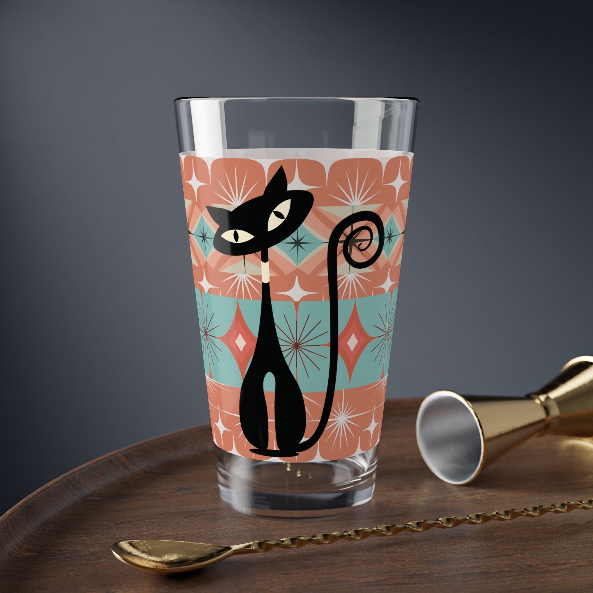 Atomic Cat Mid Century Modern Barware, Retro Cocktail Shaker Glass, Mcm 50s, 60s Atomic Age Drinkware