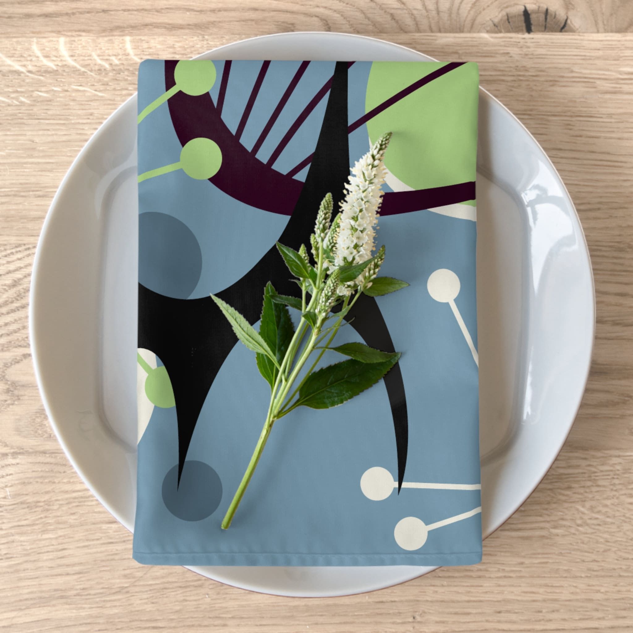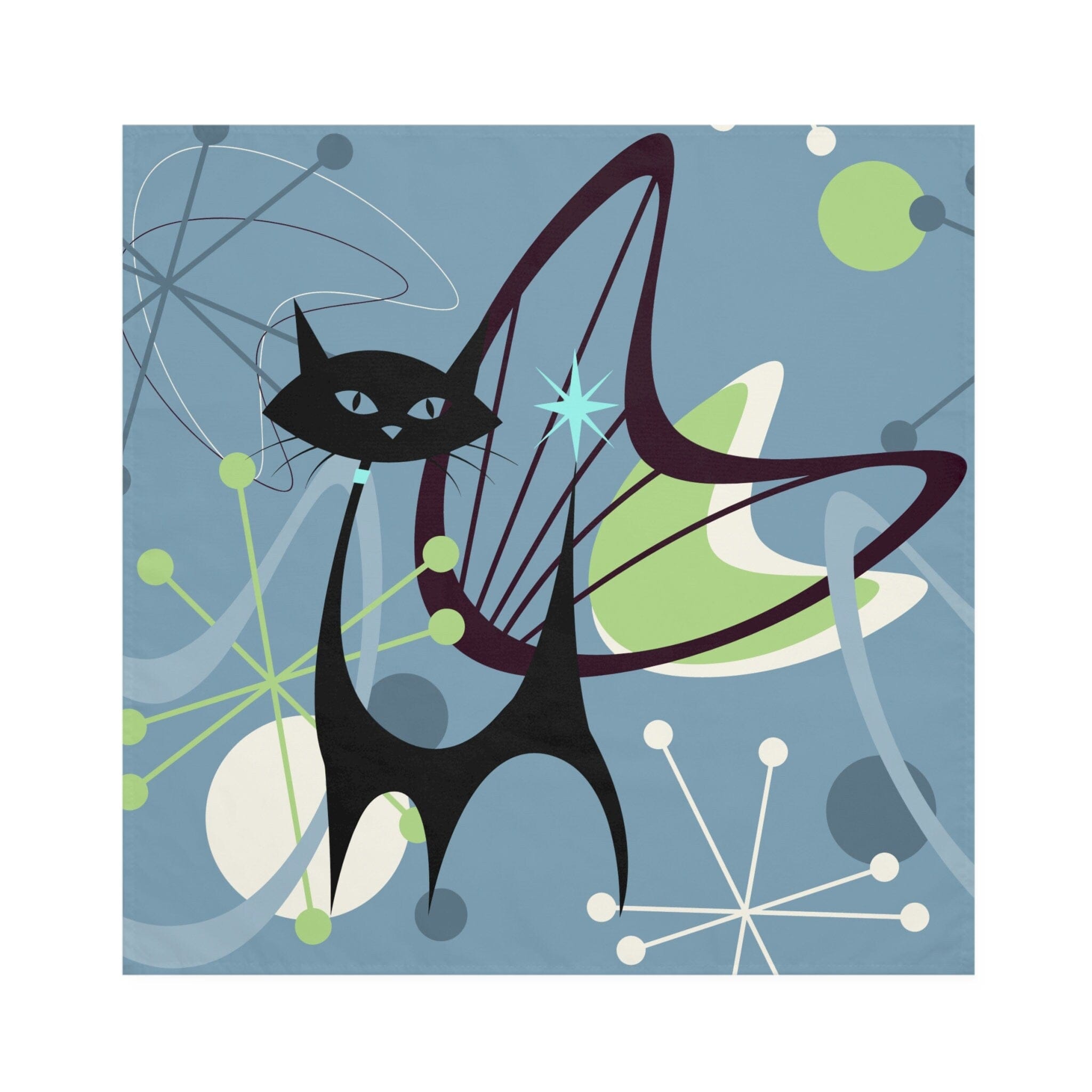 Atomic Cat Mid Century Modern Cloth Napkins, Set of 4 Retro Atomic Boomerang starburst Table Linens, Cat Lover's Gift