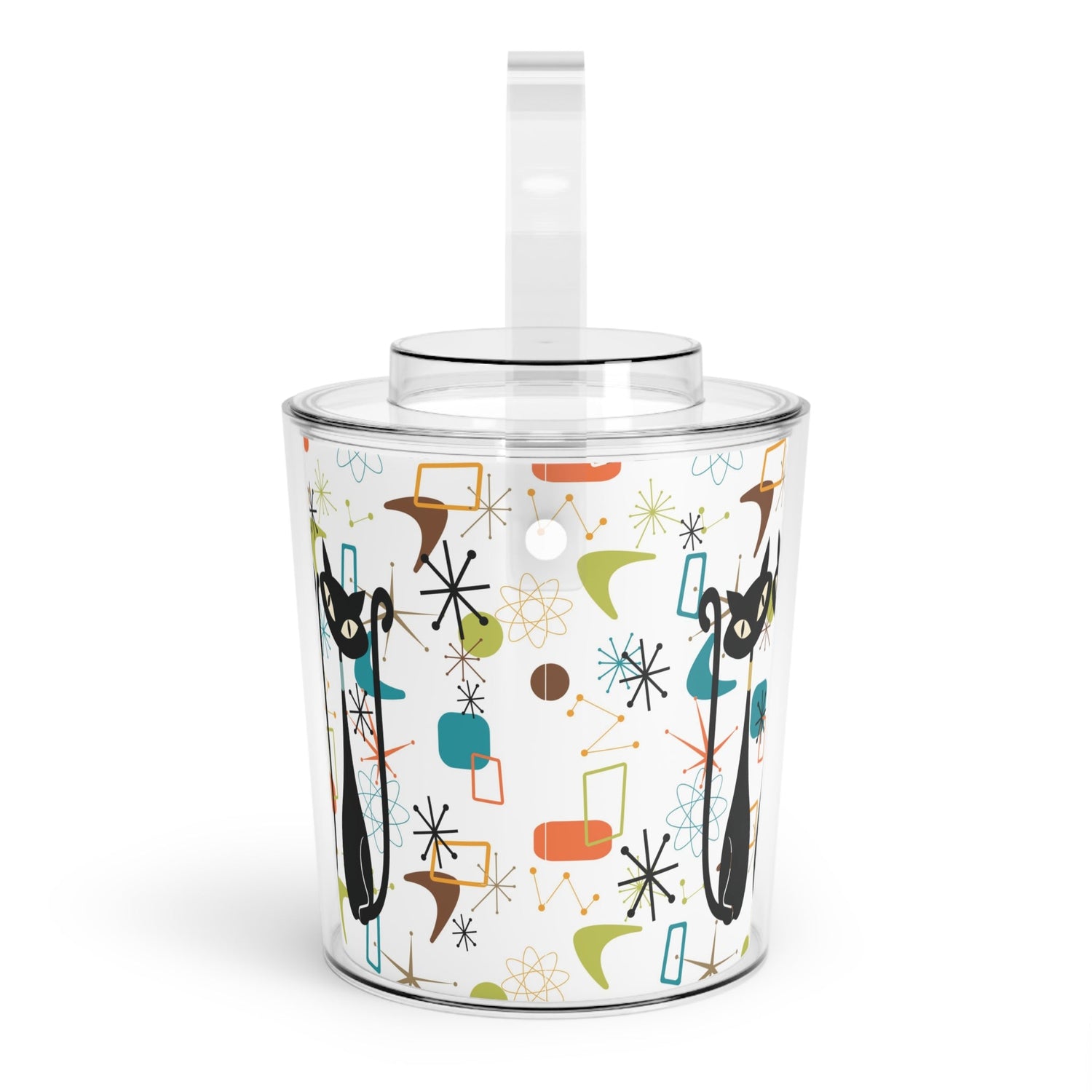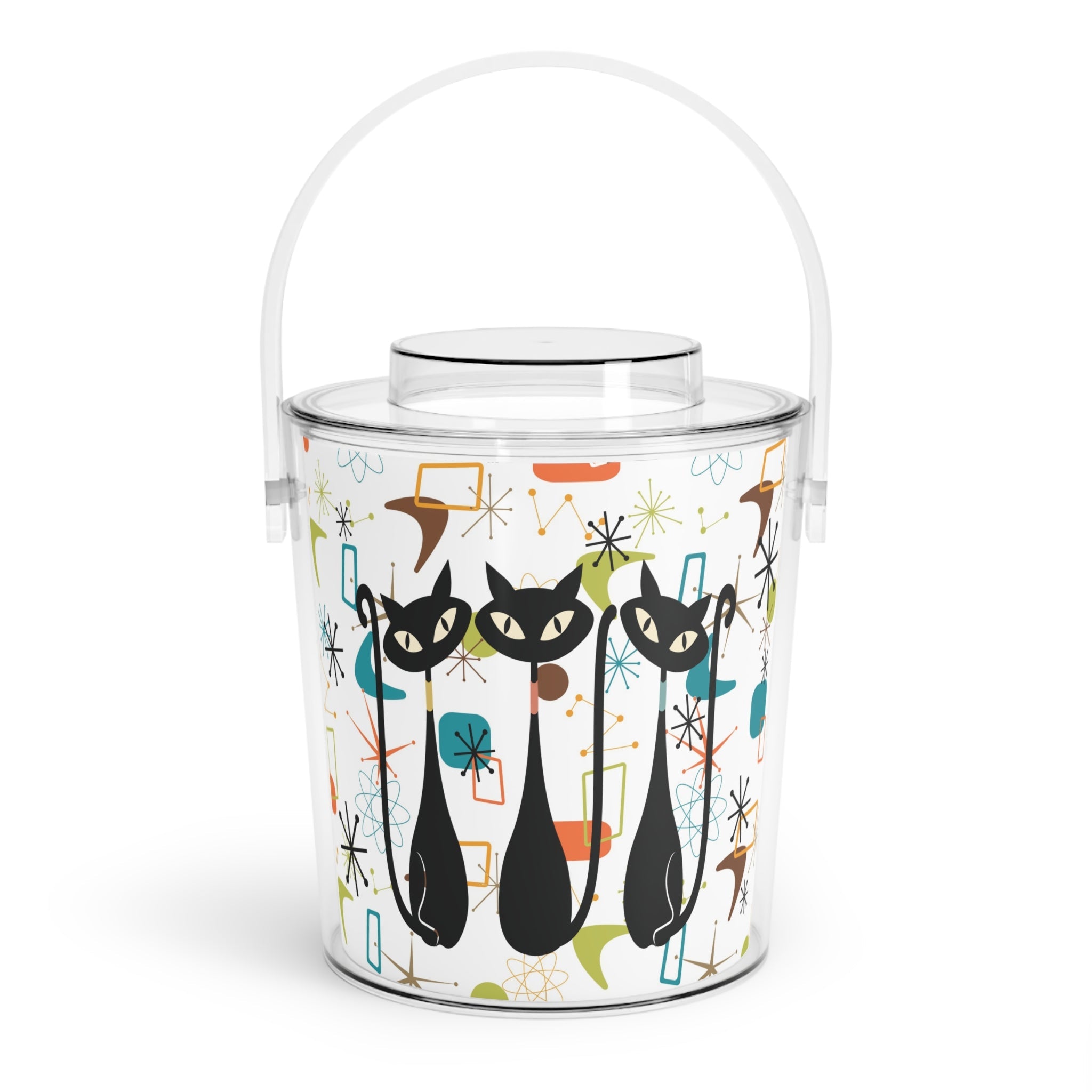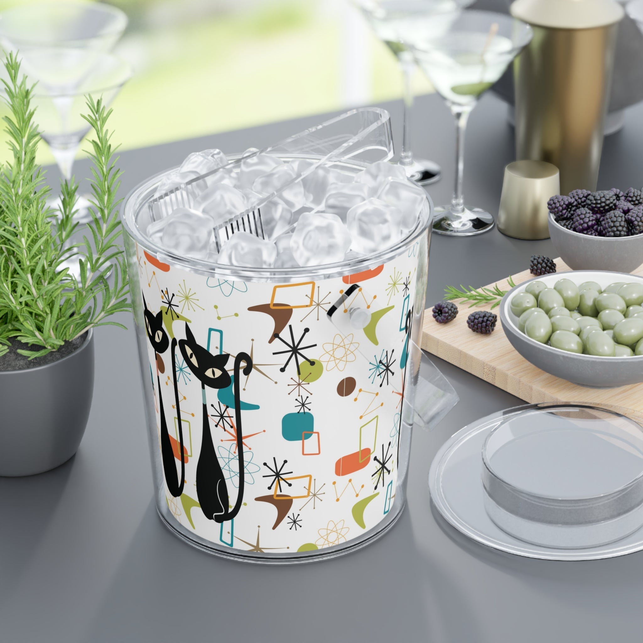 Atomic Cat Mid Century Modern Ice Bucket Retro Barware, 50s Kitsch Cocktail Party Drinkware