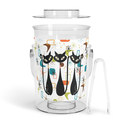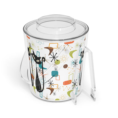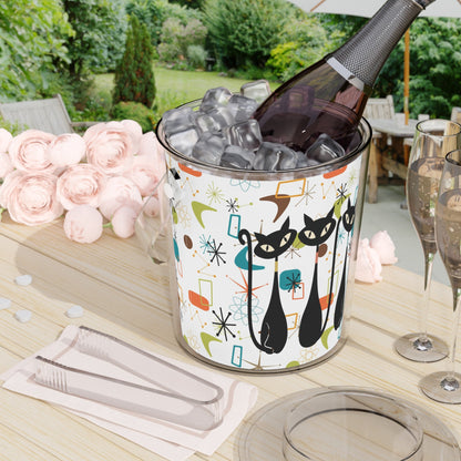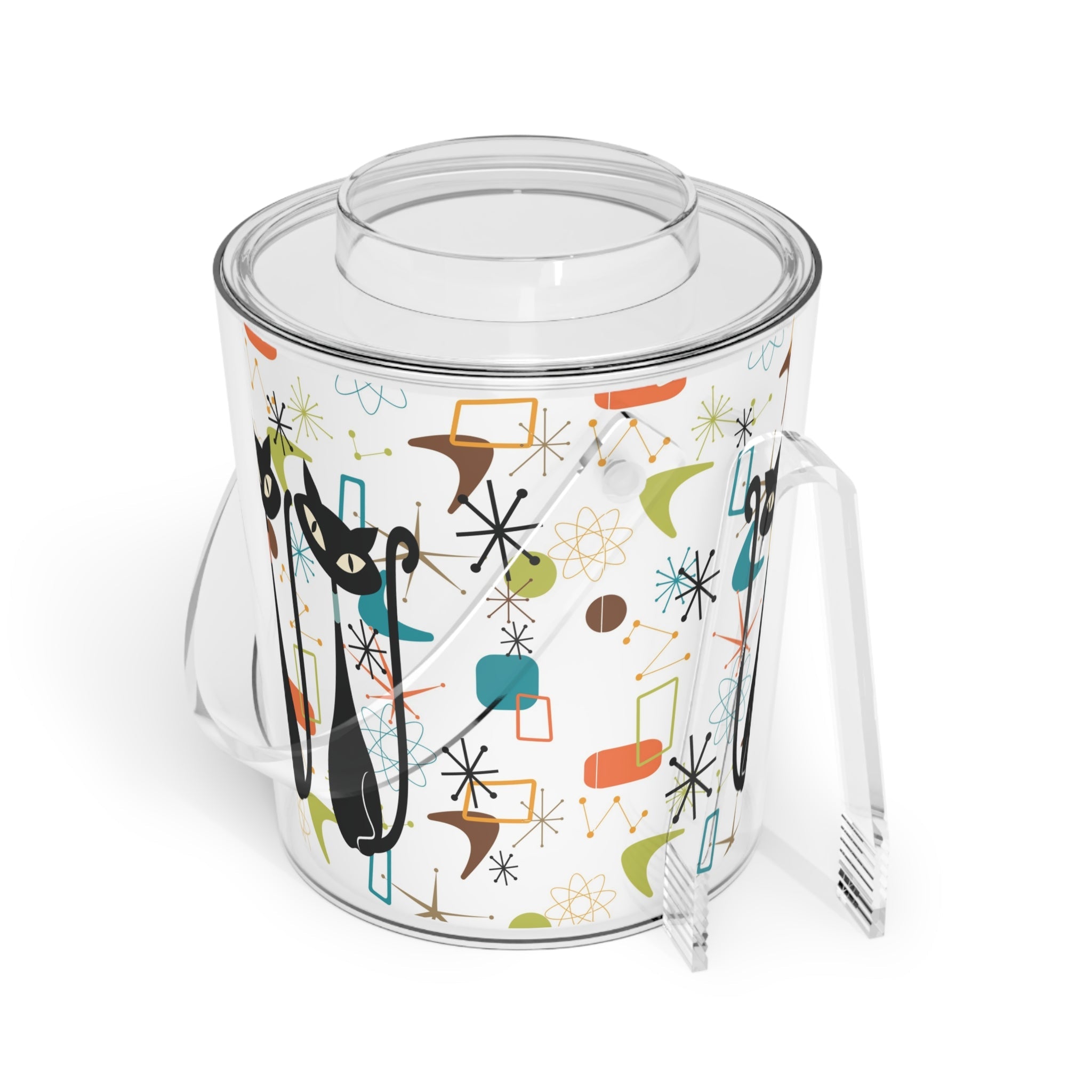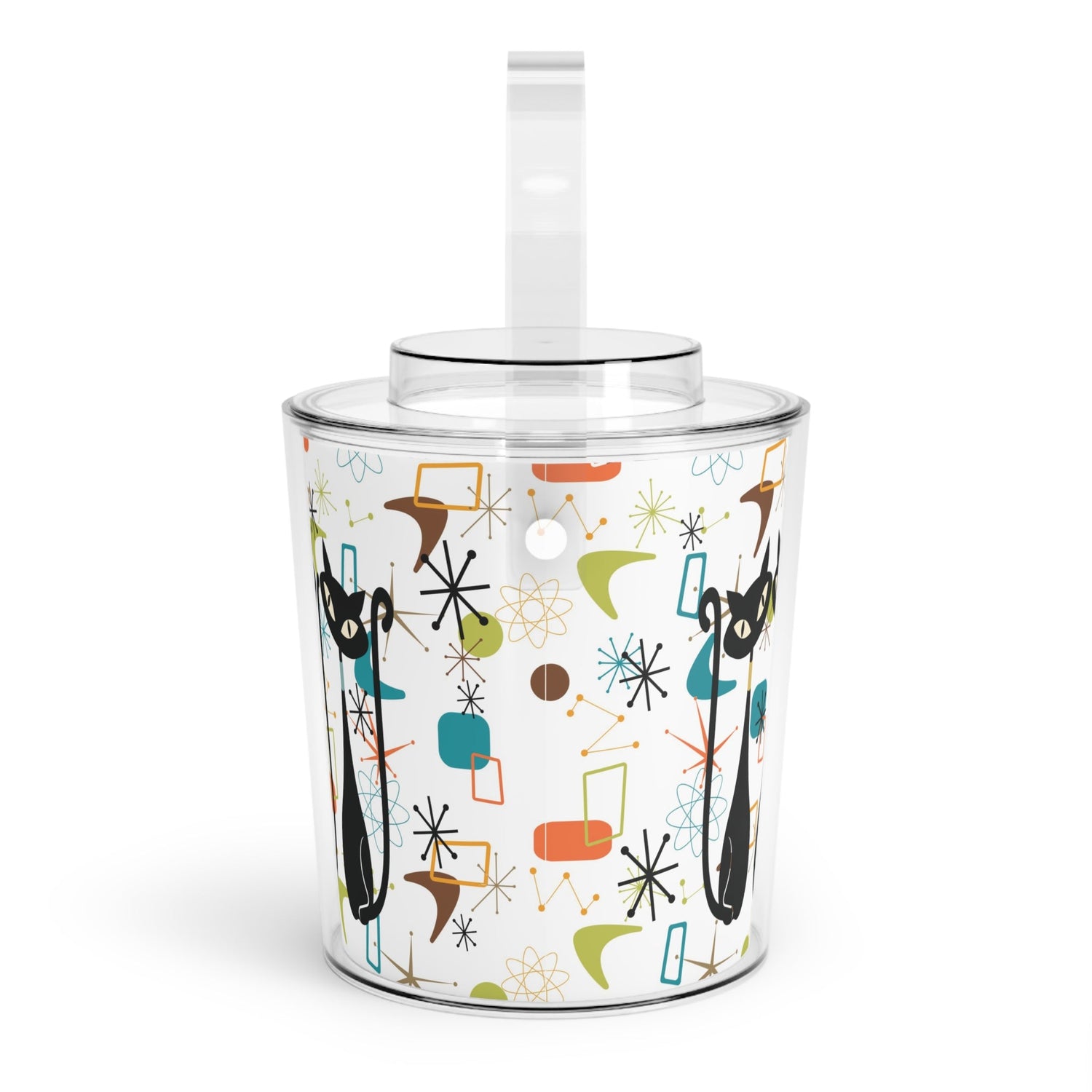 Atomic Cat Mid Century Modern Ice Bucket Retro Barware, 50s Kitsch Cocktail Party Drinkware