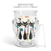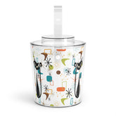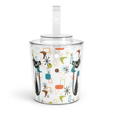 Bring cocktail hour to life with this Atomic Cat Mid Century Modern ice bucket with tongs. These sleek kitties and playful starbursts keep ice cool and your bar cart looking even cooler. With an easy-lift lid and handy tongs, let the good times roll—retro style!