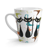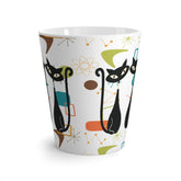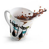 Sip in style with this eye-catching latte mug, adorned with a classic mid-century modern cat design. Its vibrant atomic age pattern brings a retro touch to your coffee breaks, making it a must-have for every vintage enthusiast and cat lover. Crafted from quality ceramic, this mug is both functional and a delightful piece of art. Whether it's a gift or a treat for yourself, this mug will surely become a conversation starter in any kitchen.