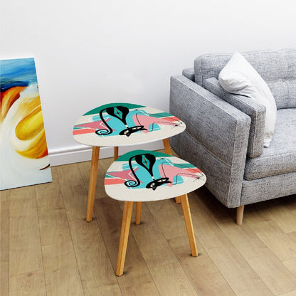 Meet your new favorite furniture duo! These nesting tables are pure 50s perfection, starring the sleek Atomic Cat and bold retro geometrics. They're perfect for coffee time, cocktails, or just looking fabulous in your space. Functional, stylish, and dripping with mid-century charm—what's not to love?