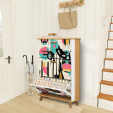 Atomic Cat Mid Century Modern Shoe Cabinet, 50s Geometric Storage Organizer, Retro Entryway Furniture