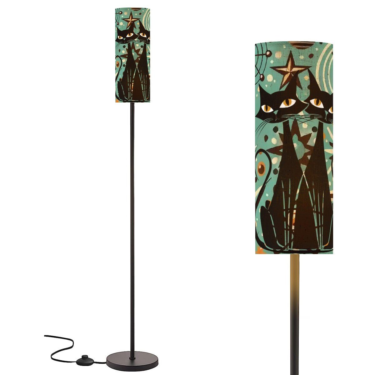 Illuminate your space with this Atomic Cat retro arc floor lamp, the perfect mid-century modern centerpiece! Featuring a bold starburst design and a sleek arc shape, this lamp adds a dash of funky flair to your office, bedroom, or living room. Stylish and functional, it’s a must-have for lovers of Atomic Age decor and MCM charm. Transform your space with a touch of vintage sophistication!