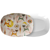 Get ready to blast off with the Atomic Cat Sputnik Platter! This Mid Century Modern Dinnerware will add a touch of retro whimsy to your dining experience. With its sleek design and playful cat graphic, it's sure to be a conversation starter at your next dinner party.
