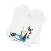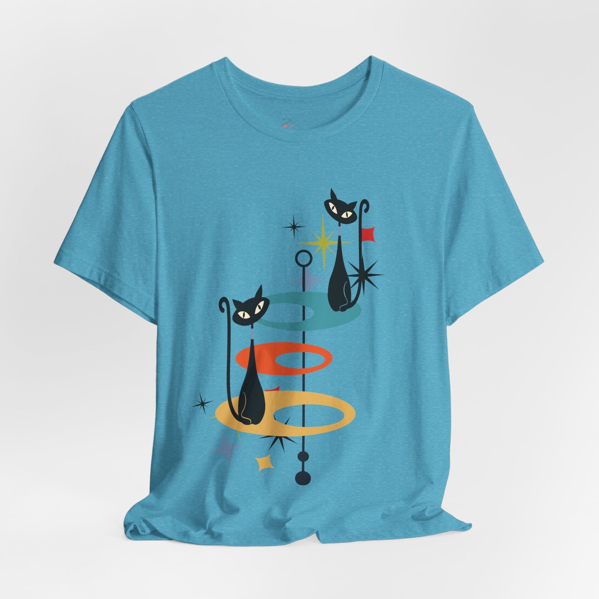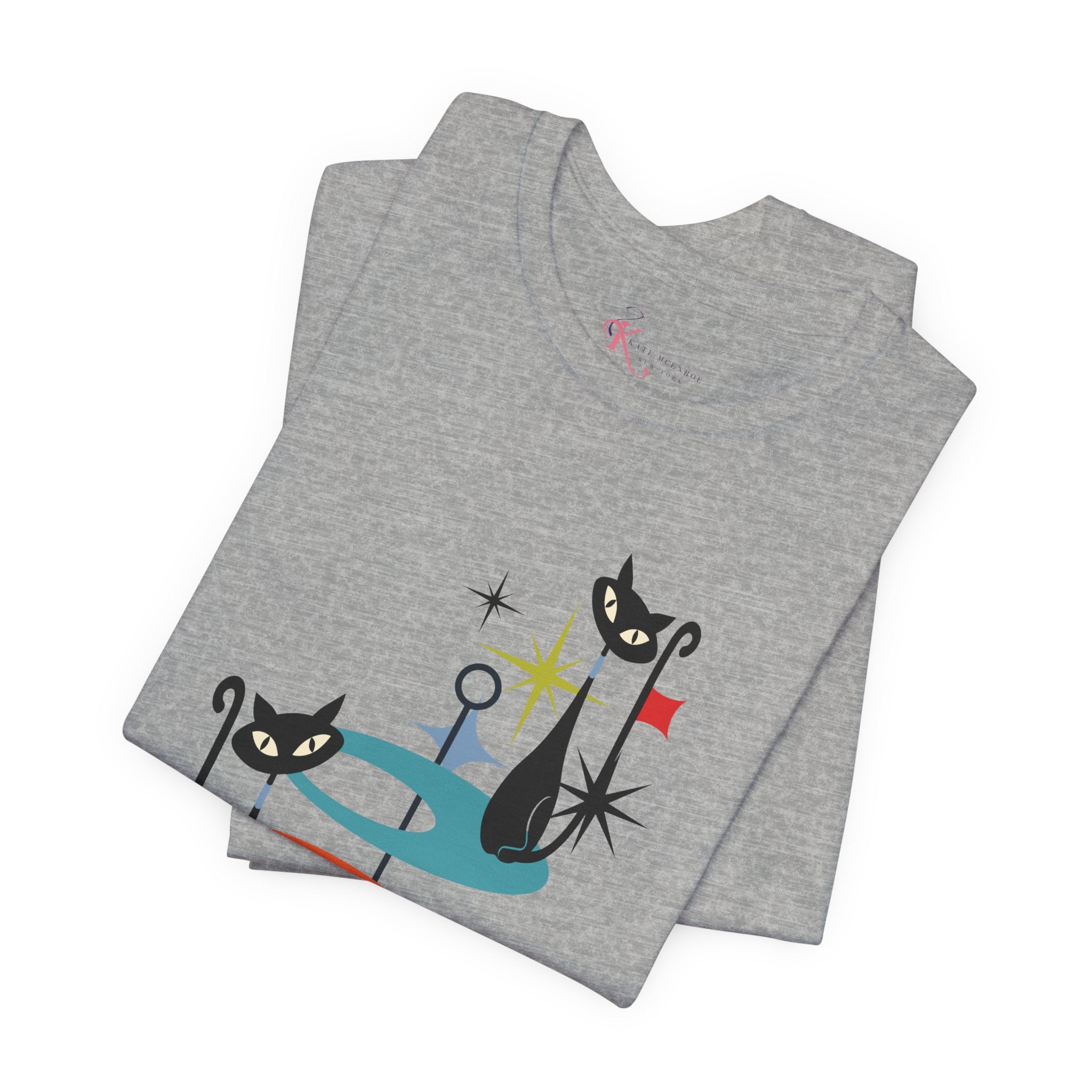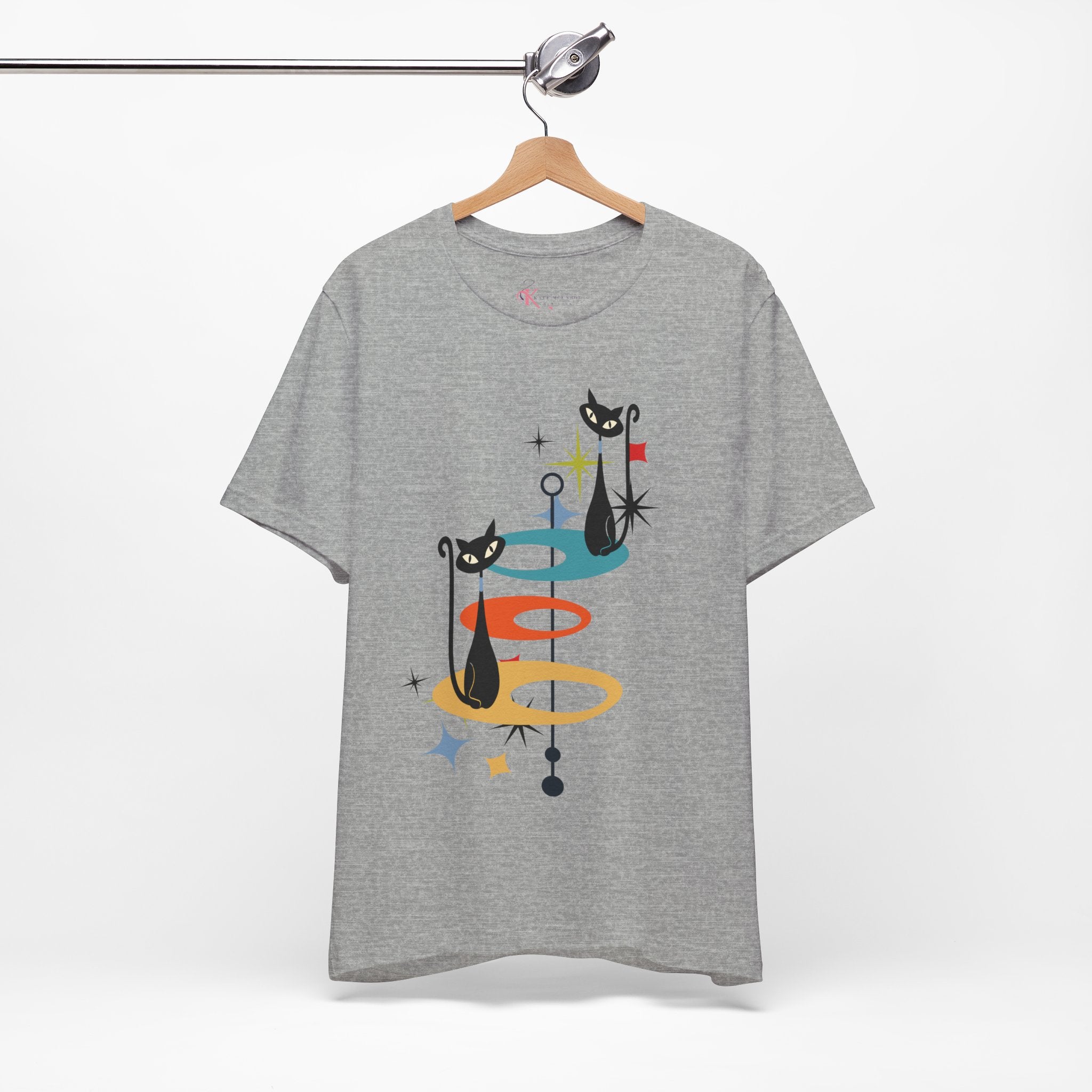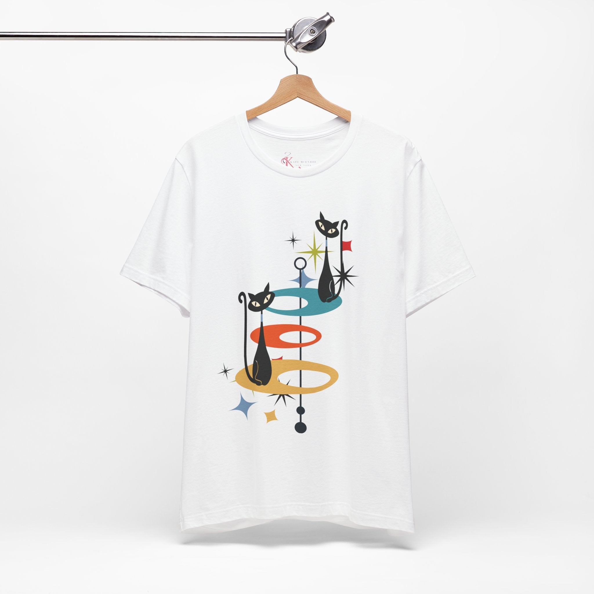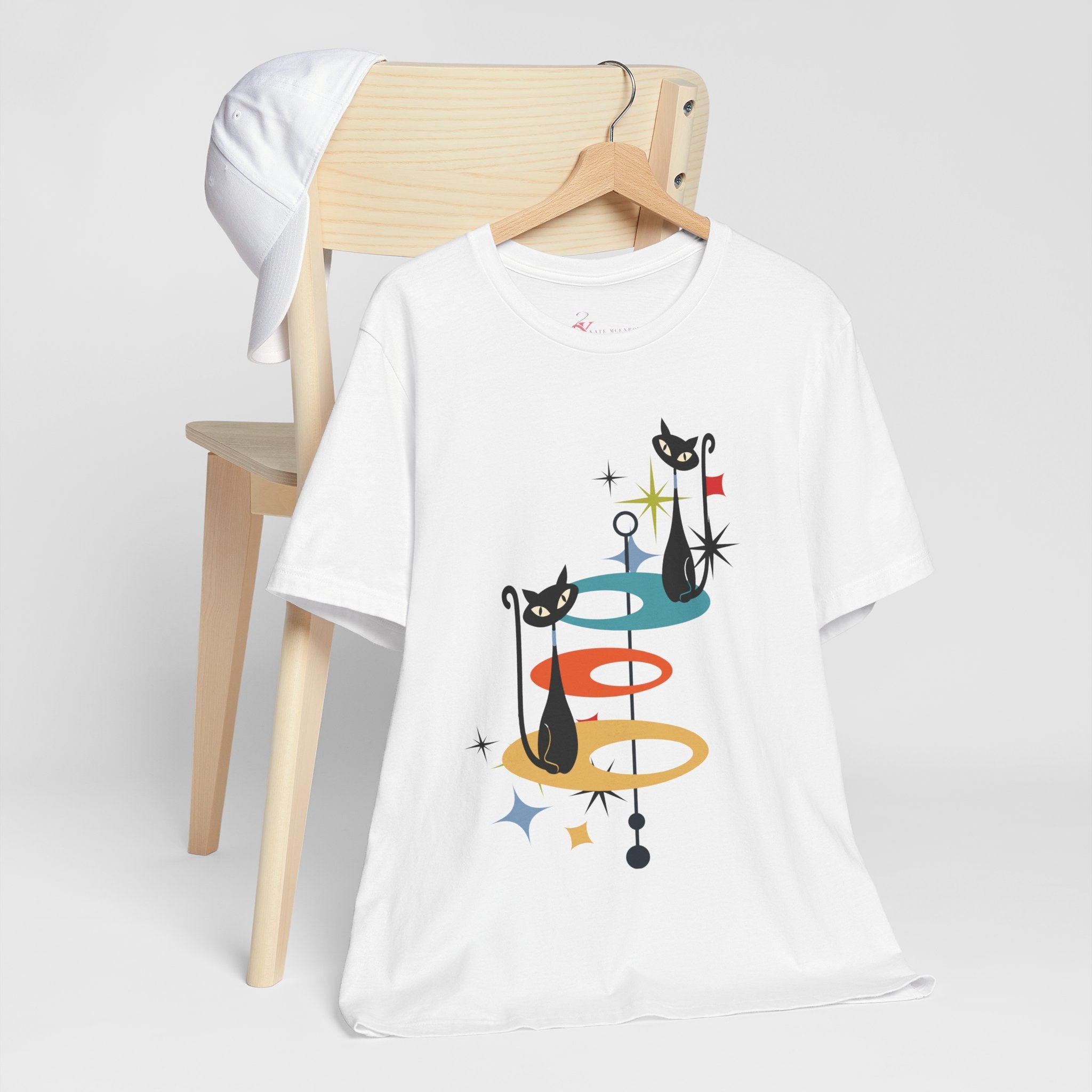 Atomic Cat Mid Century Modern T-Shirt, Retro 50s Kitsch Graphic Tee, MCM Space Age Starburst Shirt