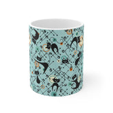 Atomic Kitschy Cat Mug, Retro Mid Century Modern Drinkware