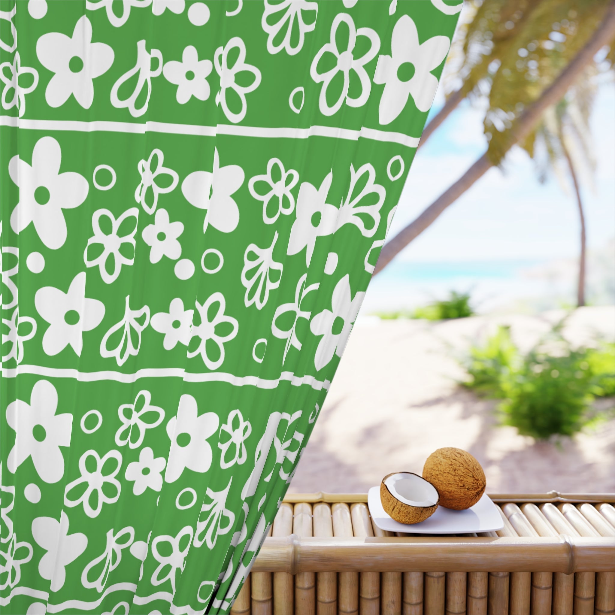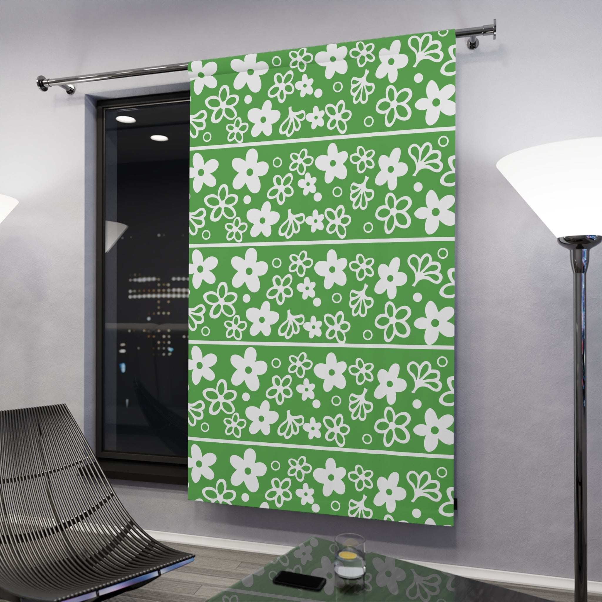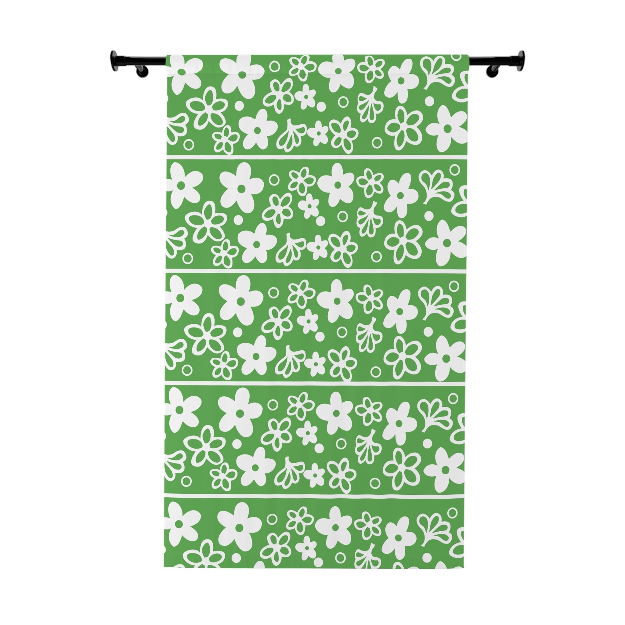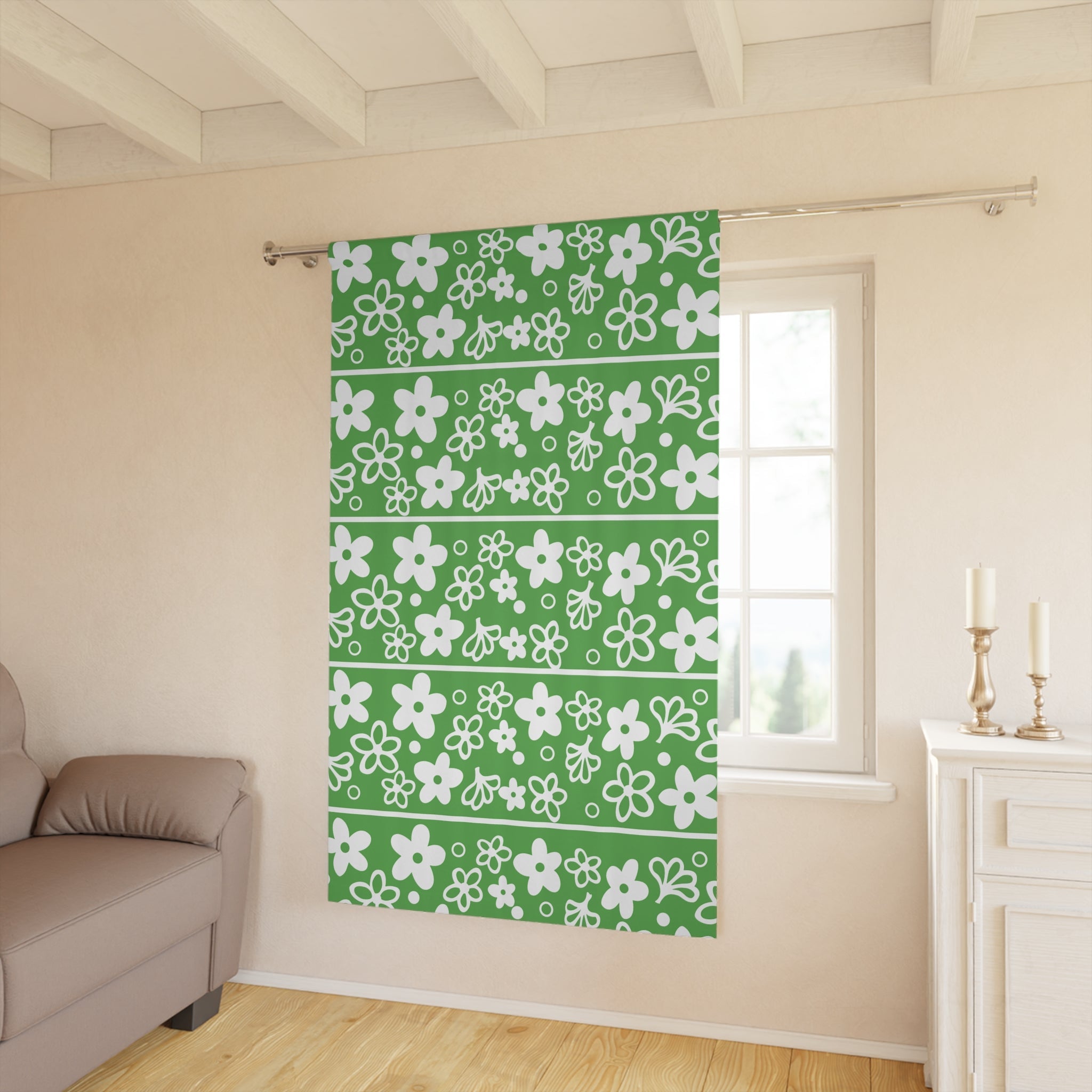 Bring vintage charm to your space with this Pyrex Spring Blossom blackout curtain! Featuring the iconic Crazy Daisy floral in vibrant green and white, this mid-century modern drape adds a nostalgic 70s vibe while blocking out light for a cozy, retro retreat.