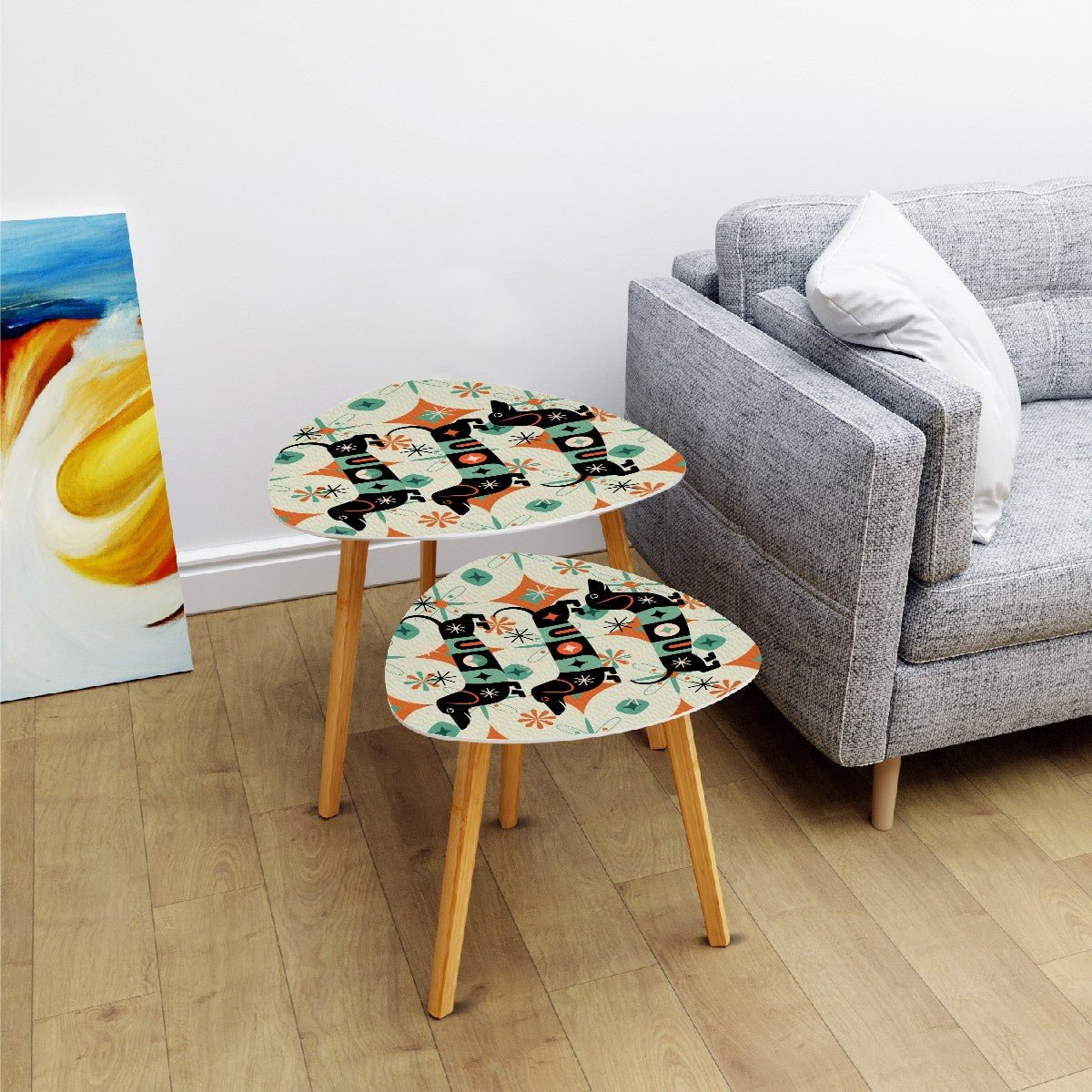 Dachshund Mid Century Modern Nesting Tables, Retro MCM Accent Furniture Set