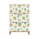 Organize your shoe collection with the Franciscan Starburst Shoe Cabinet. This mid-century modern 50s retro cabinet features 3 drawers for ample storage. Keep your space tidy and stylish with this unique shoe rack.