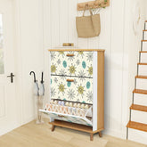 - Features: Slim design with 3 foldable drawers, raised wooden legs for slipper storage, and a countertop shelf for keys and other small items.