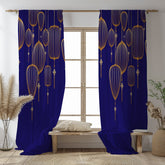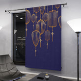 Add a touch of sophistication with this blackout curtain featuring a chinoiserie-inspired lantern design. The deep navy backdrop with gold accents ensures style while providing complete light control and privacy. Ideal for any modern space.