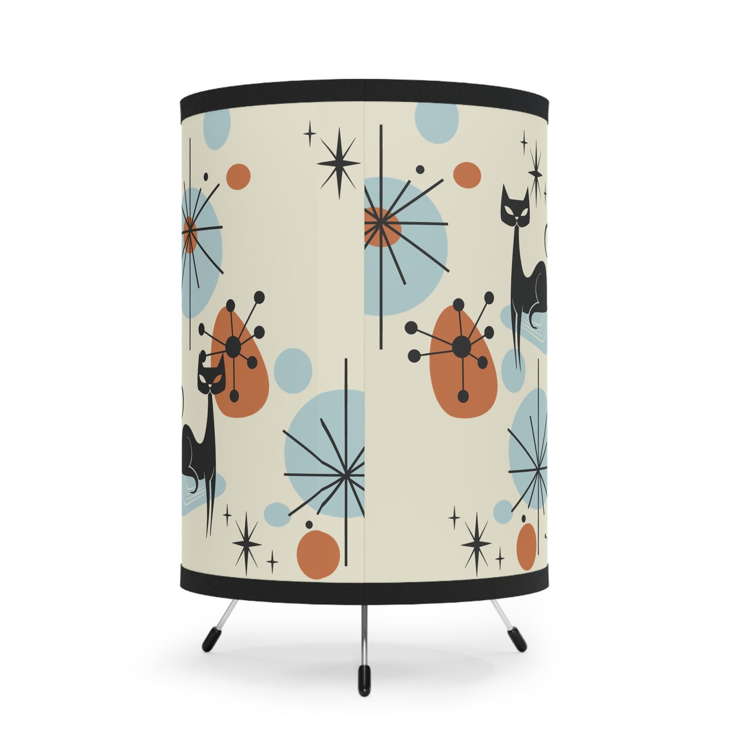 Kitschy Atomic Cat Starburst Tripod Lamp, Mid Century Modern Sexton Cat Space age Decor
