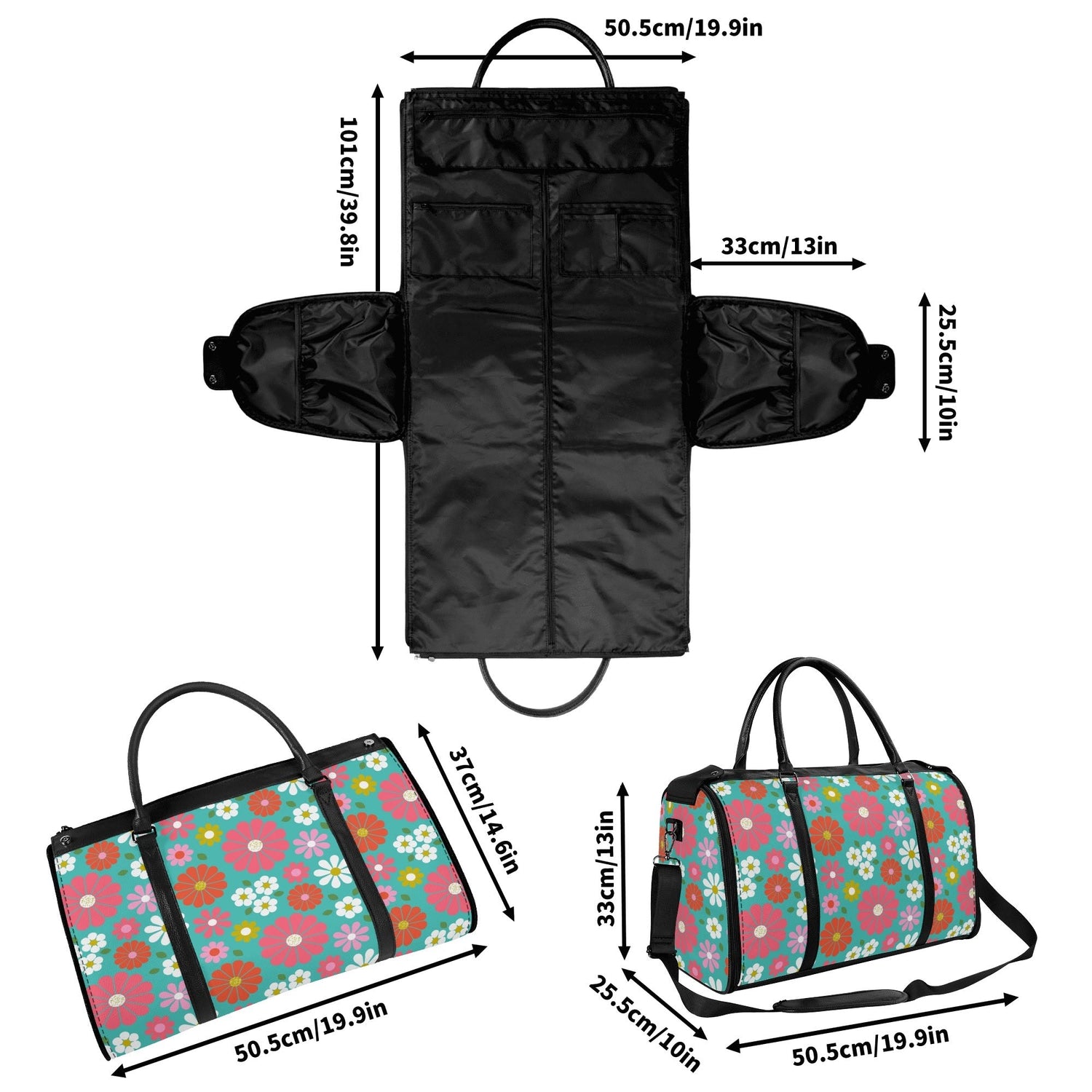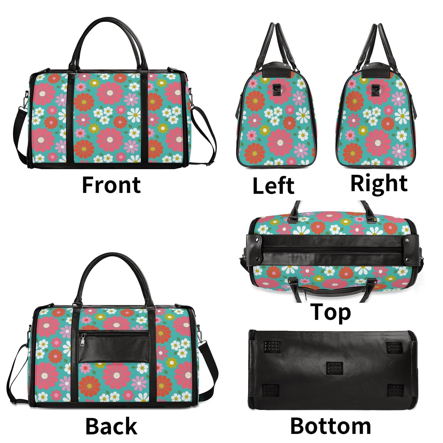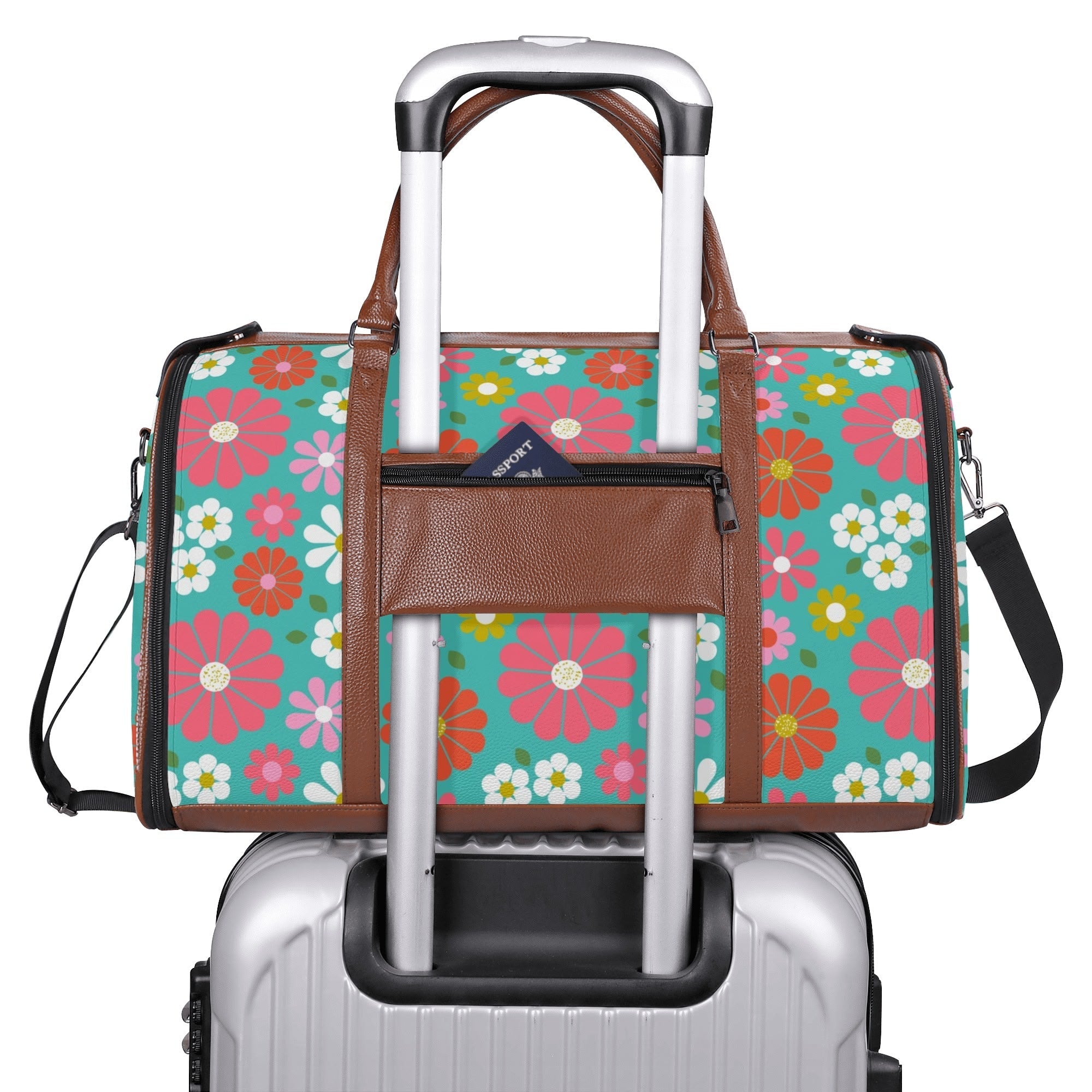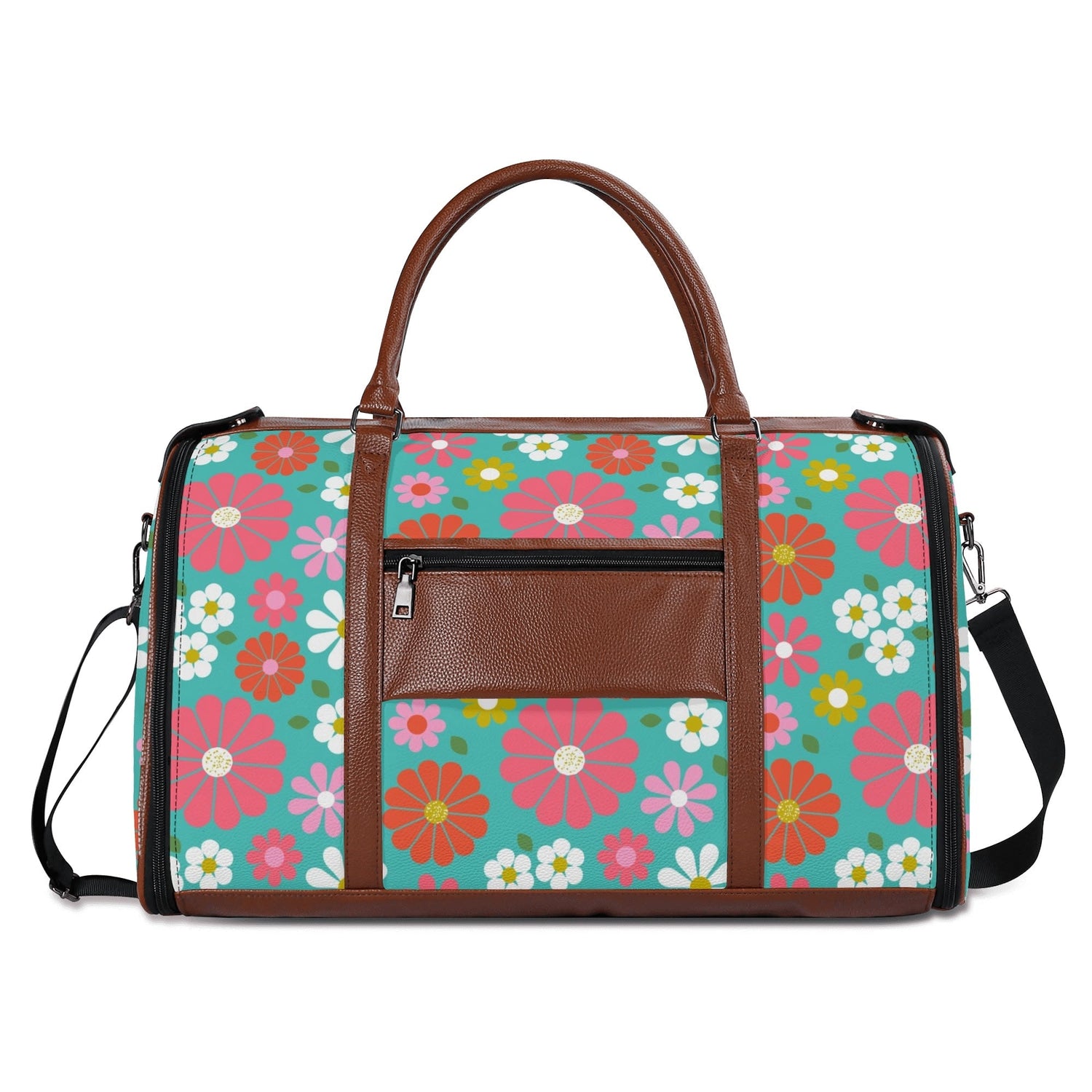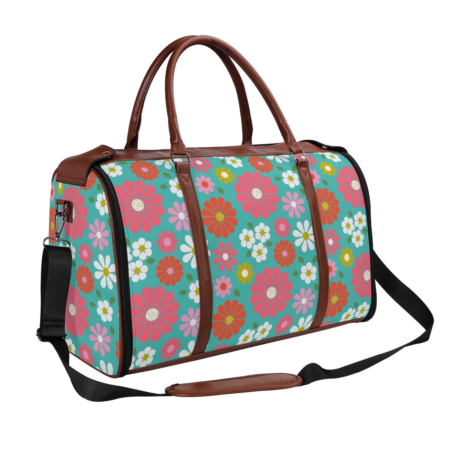 Get your groove on with this far-out 70s flower power duffel bag! Bursting with bold daisies in bright pink, orange, yellow, and teal, this retro-chic weekender is a must-have for vintage-loving travelers. Spacious, durable, and foldable, it's the perfect carry-on for road trips, festivals, or weekend getaways. A totally fab statement piece for anyone who digs that nostalgic mod vibe!