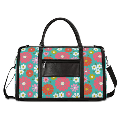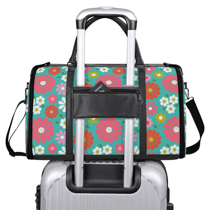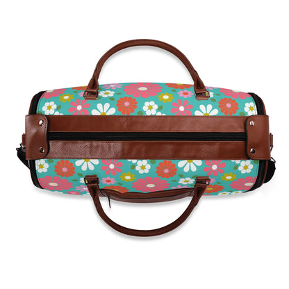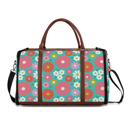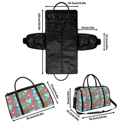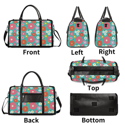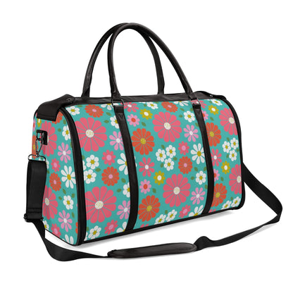 Groovy Daisy 70s Flower Power Duffel Bag, Retro Hippie Travel Weekender