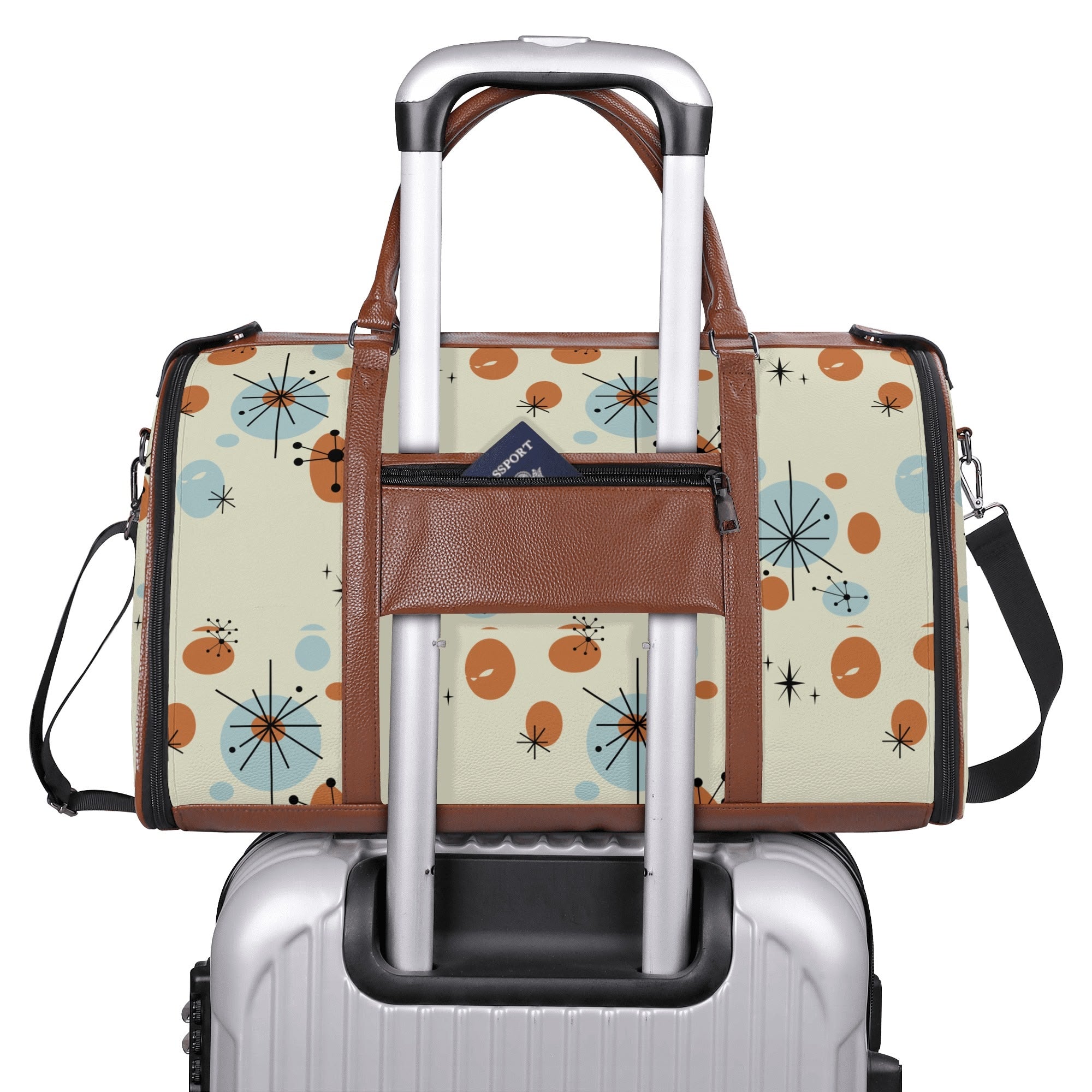 Kitschy Atomic Cat Duffel Bag, Mid Century Modern Sexton Cat Weekender, Retro Kitsch Carry-On