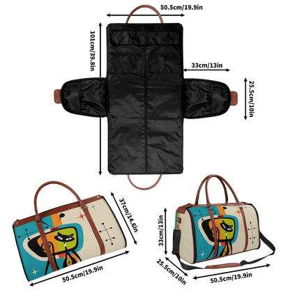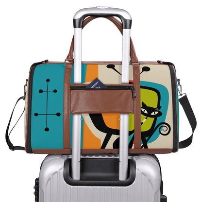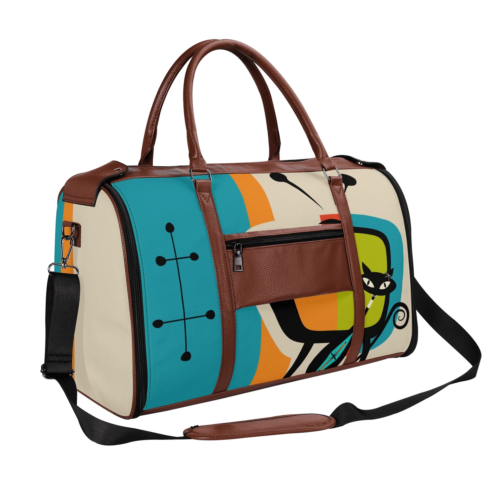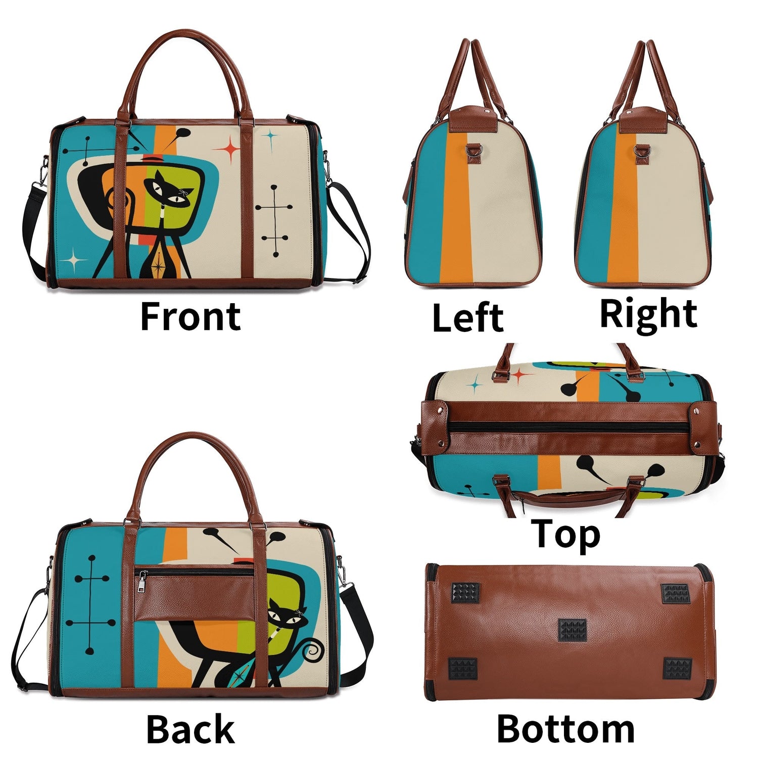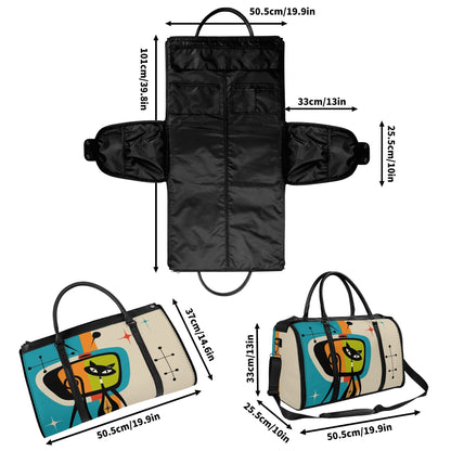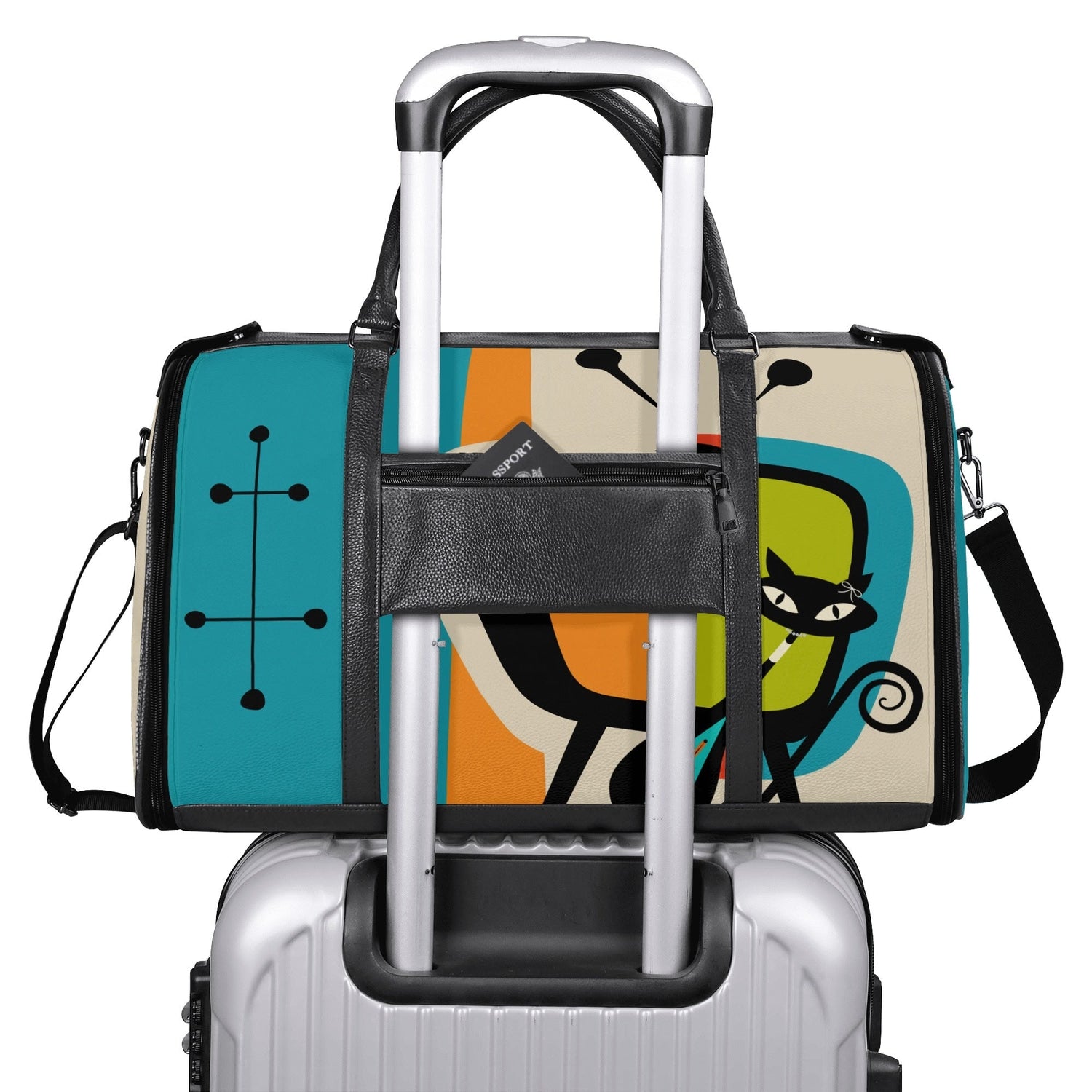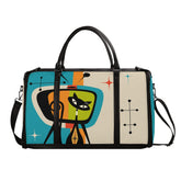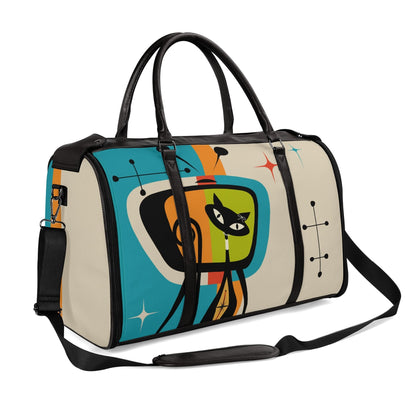 Atomic Cat Retro TV Foldable Duffel Bag, Mid Century Modern Space Age Mod Travel Weekender